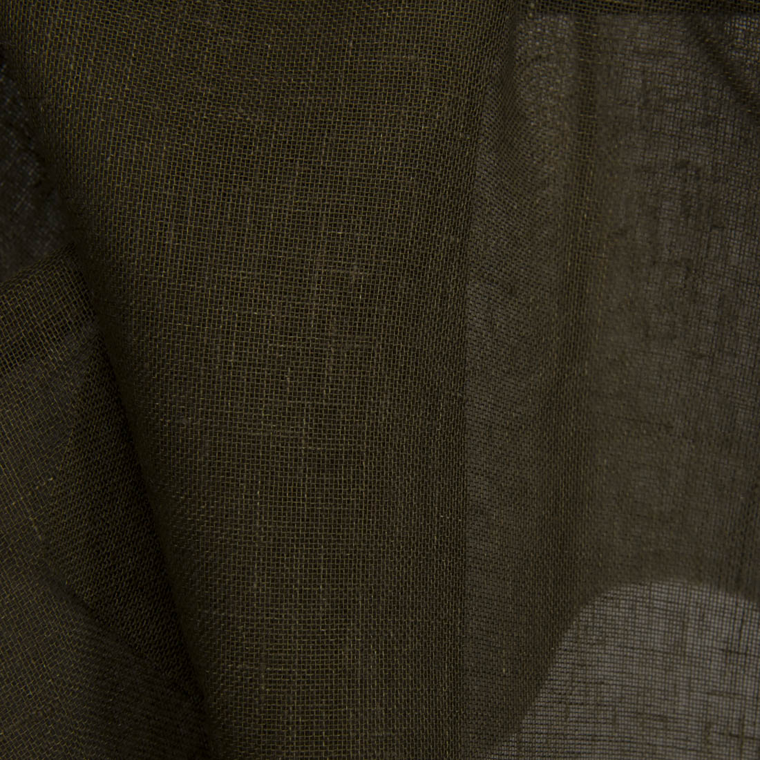 100% lin i brunaktig grønn farge, gjennomsiktig. Løstvevd, tynn og lett stoff. 150cm Bredde.