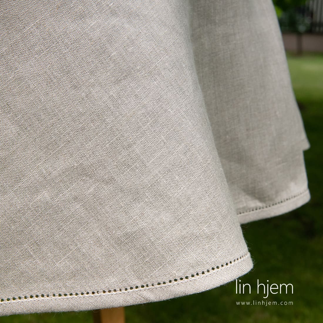 Rund (oval) grå linduk, hullmønstret. Produktets stoff ble vevd av naturlig (ufarget) lingarn. Kant dekorert med hullmønster. Kombiner med våre hullmønstret servietter. Den universelle fargen gjør at du kan dekorere bordet med disse produktene i hele året!