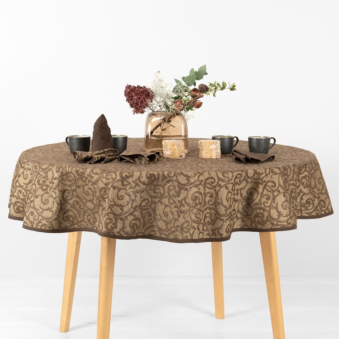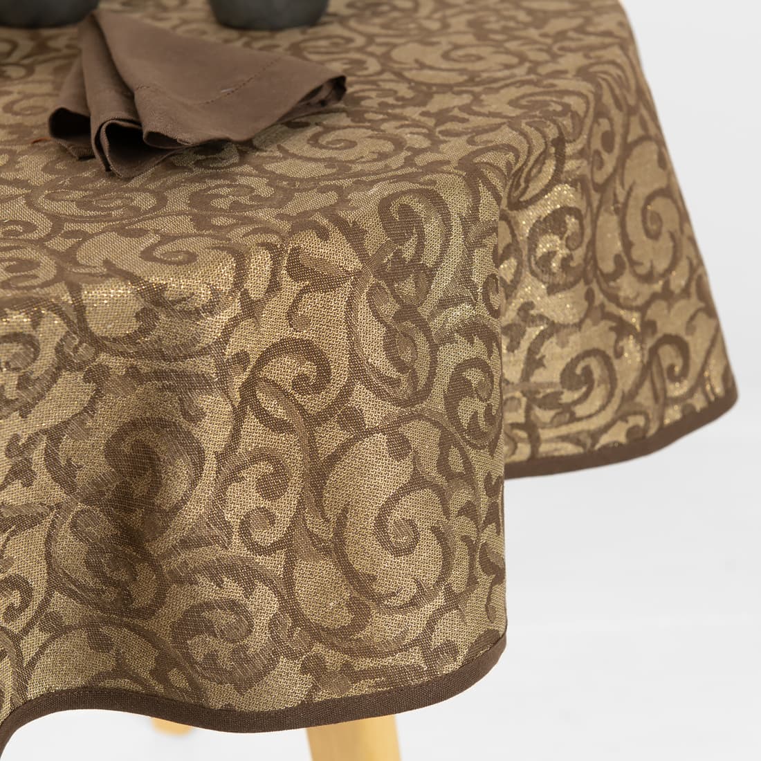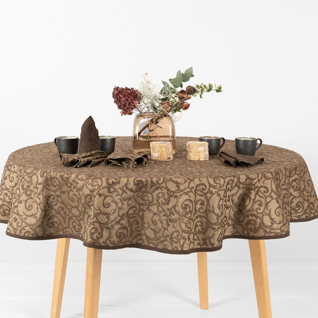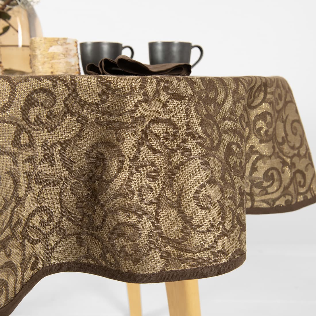 - Farge: vevd av mørkebrun bomull, naturlig farge (ufarget, brungrå) lin og gull polyestergarn