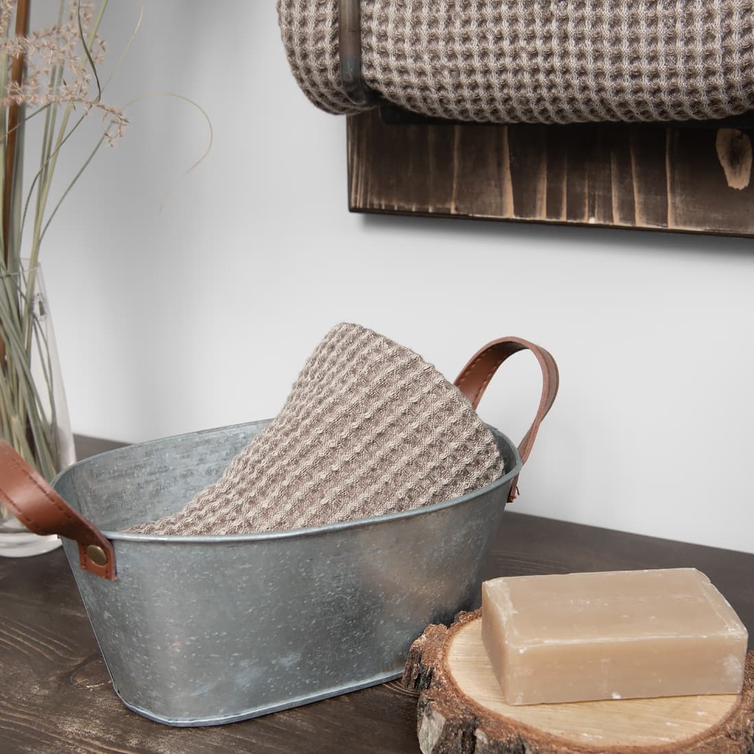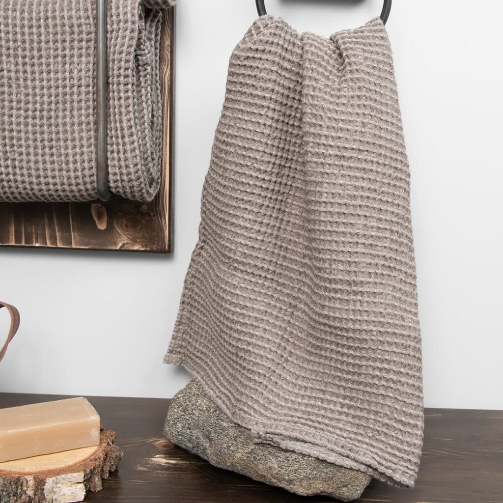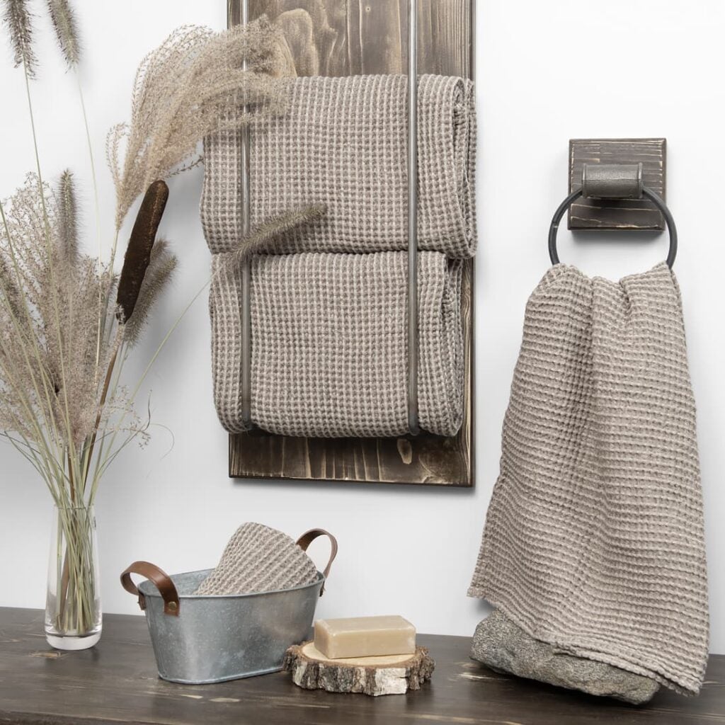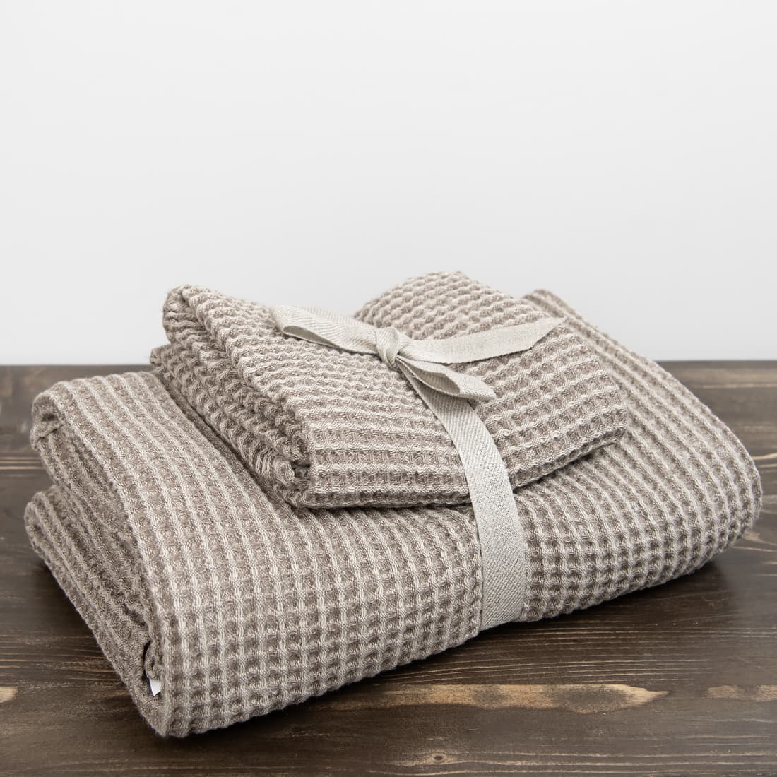- Detaljer: med hempe, håndklesett på to er knyttet med et bredt bånd