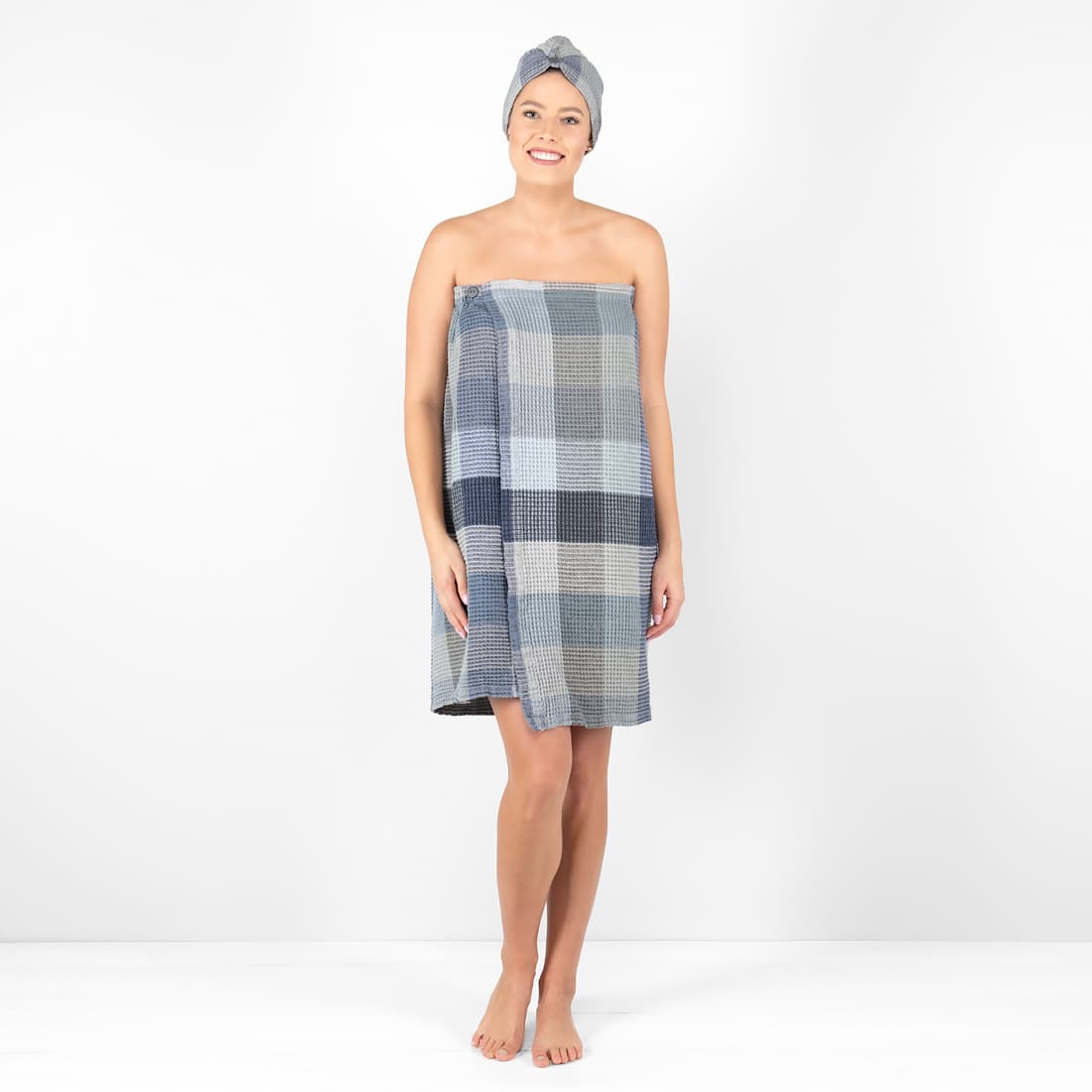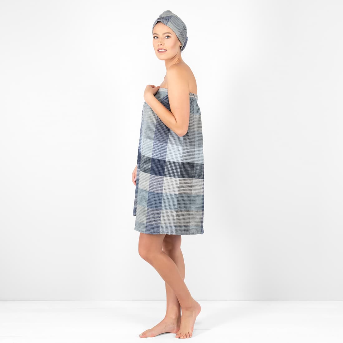 - Mønster: vaffelvevd, ruter