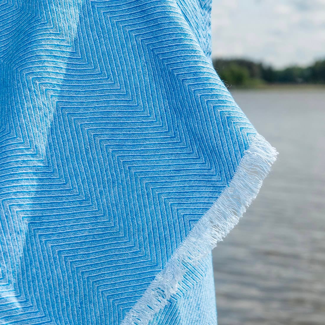 - Farge: blanding av lys babyblå og elektrisk blå garn