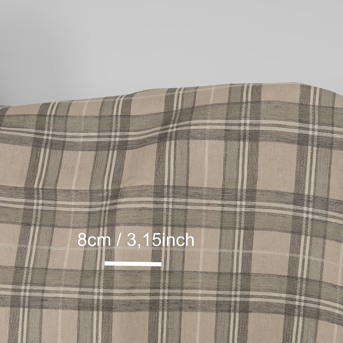 • Beige lin-bomullsstoff i ruter for sying klær, hjemmetekstiler