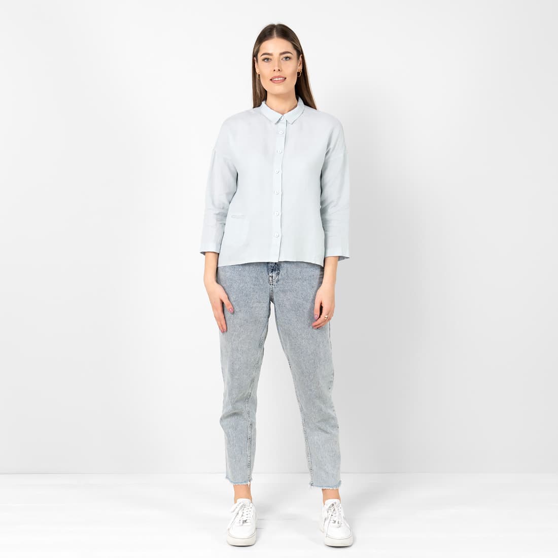 - Detaljer: 3/4-ermer, mansjetter med brede innsatte mansjetter, gjennomgående knappestolpe, liten lomme på høyre side