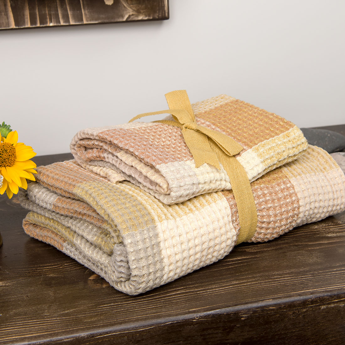 - Farge: vevd av hvit-gul, beige, brun-gul, kremfarget, lysebrunt, brunt garn