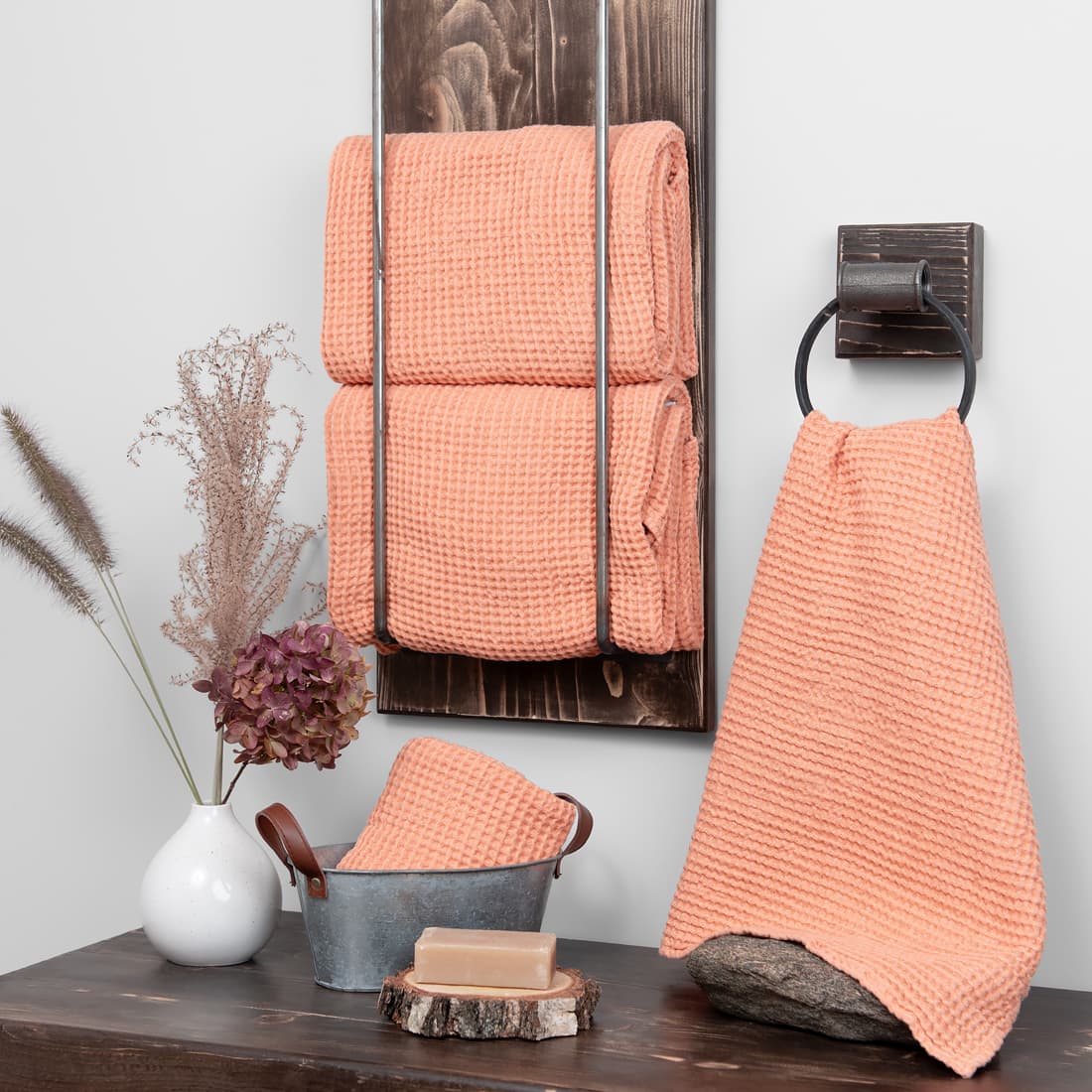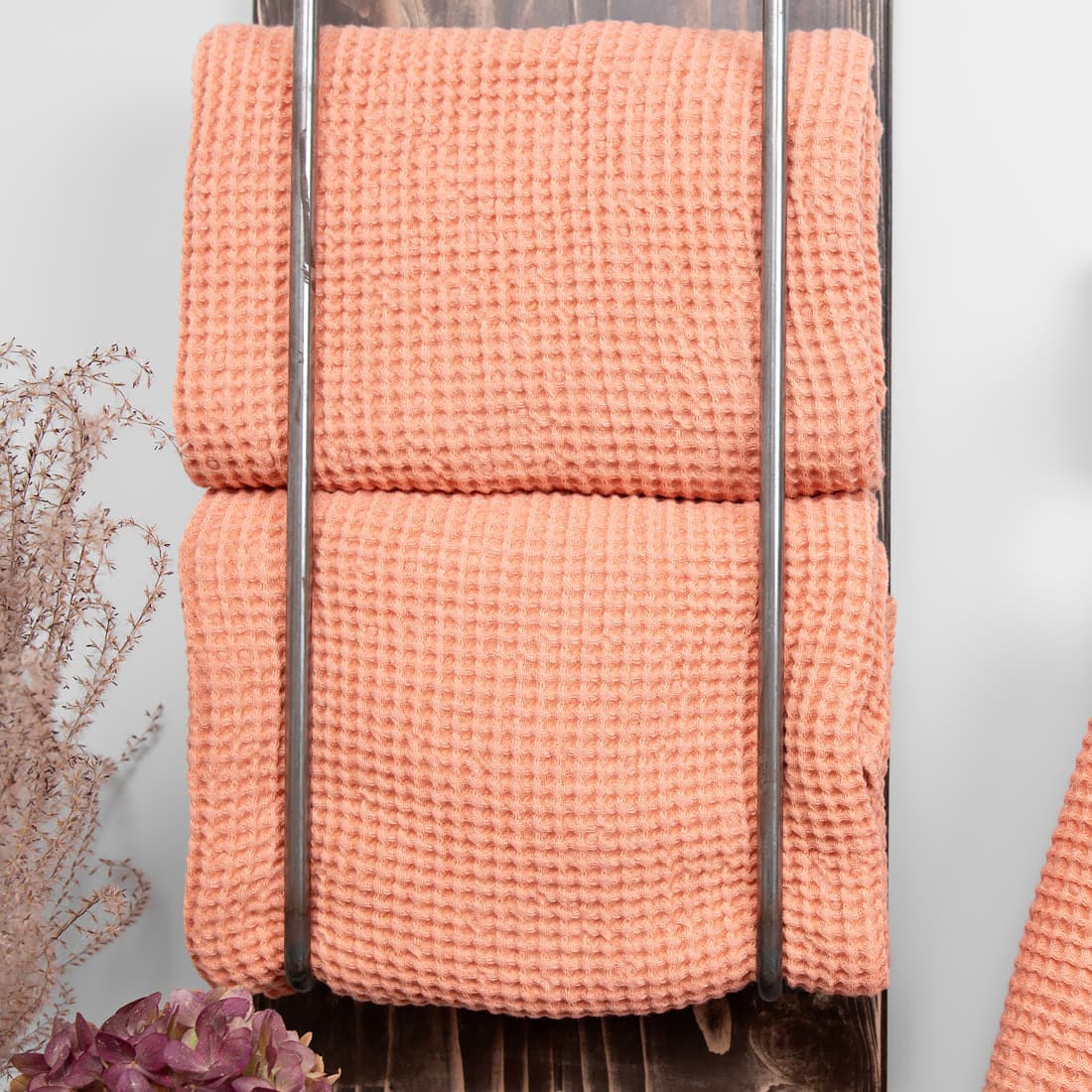 - Detaljer: løkke. Et sett med håndklær er bundet med et bredt bånd