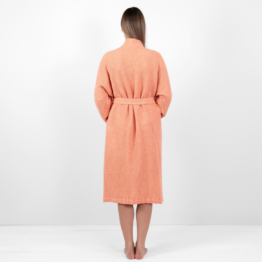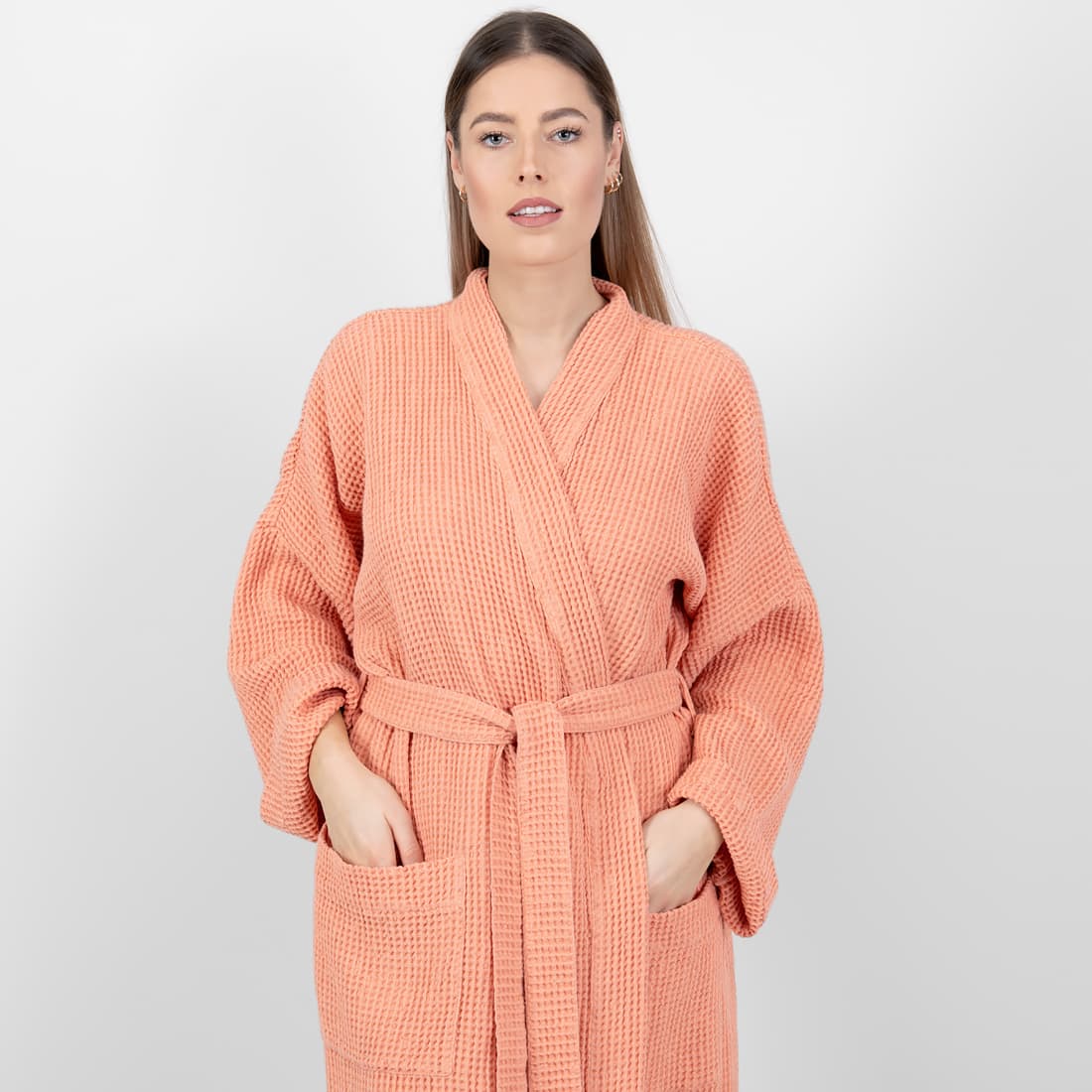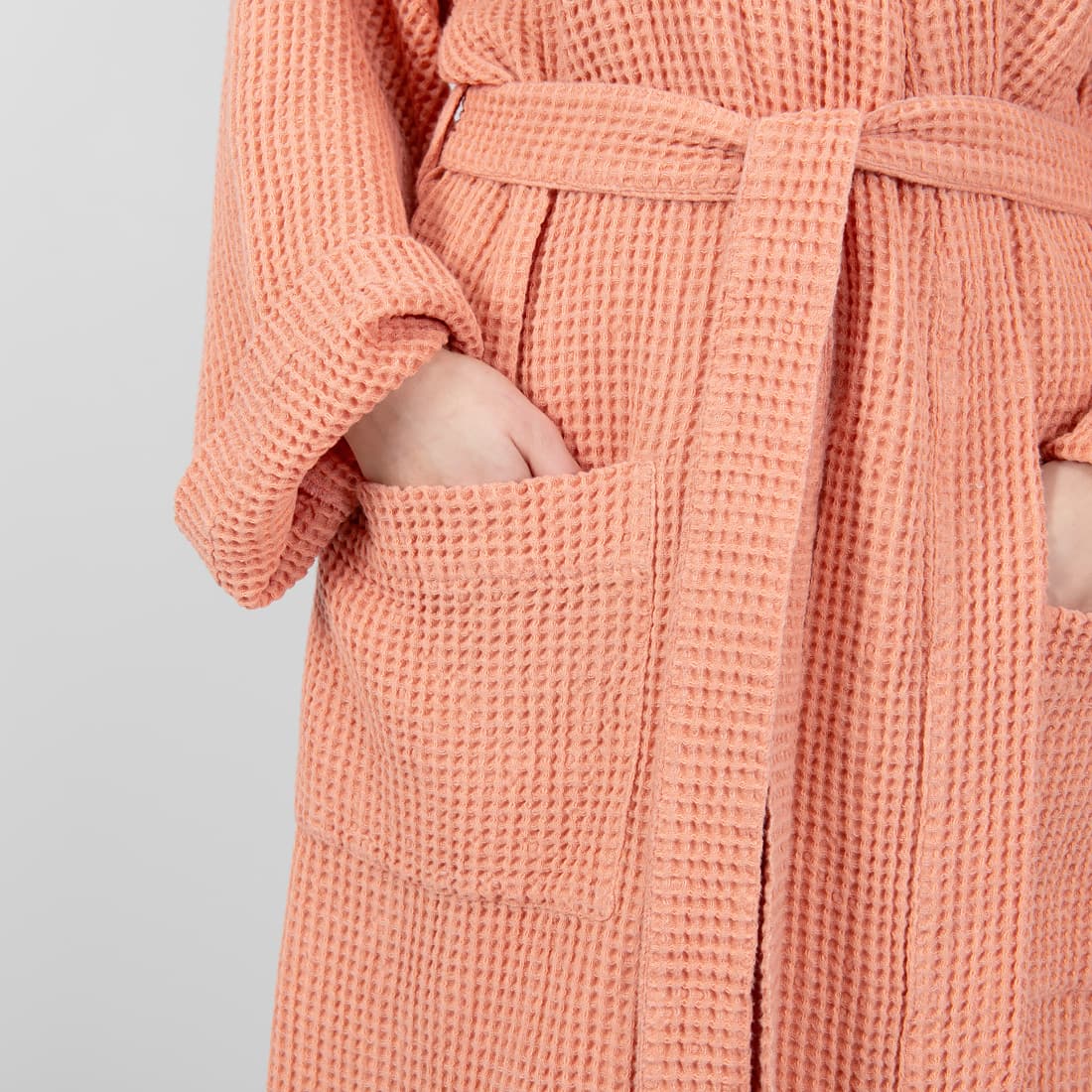 - Detaljer: bundet med et belte, med lommer foran