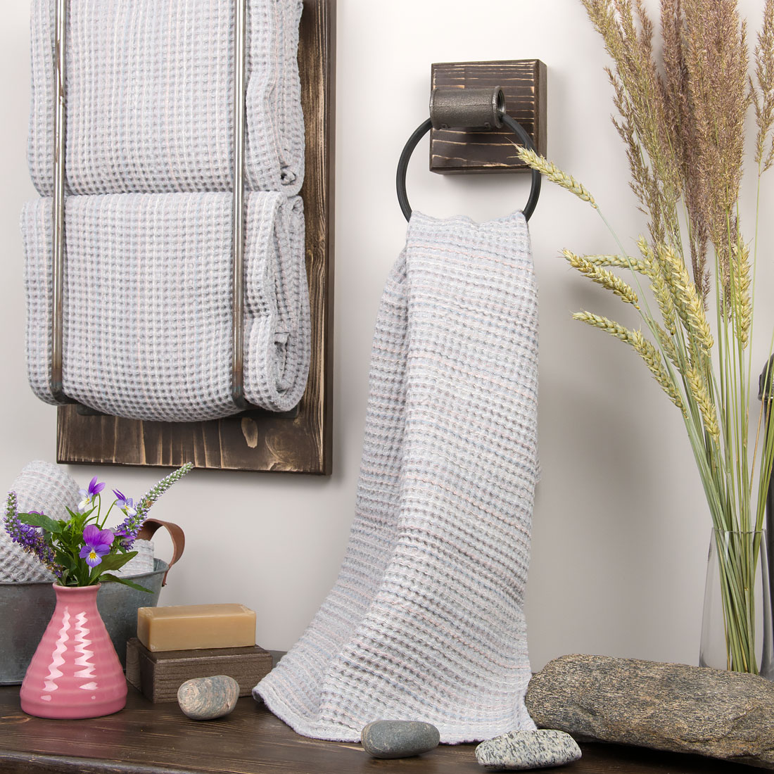 - Detaljer: løkke. Et sett med håndklær er bundet med et bredt bånd