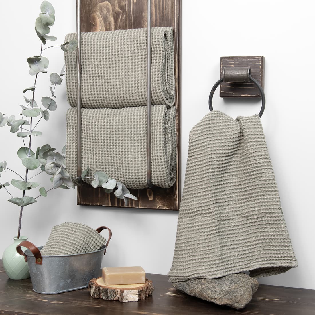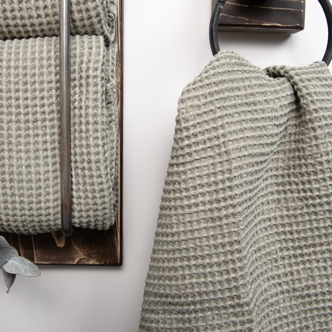 - Detaljer: løkke. Et sett med håndklær er bundet med et bredt bånd