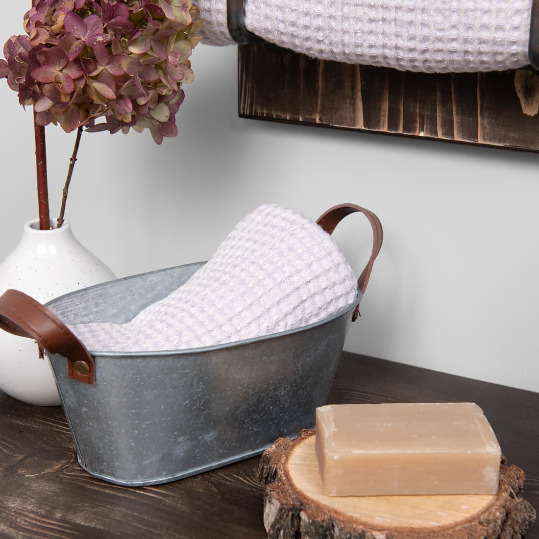 - Detaljer: løkke. Et sett med håndklær er bundet med et bredt bånd