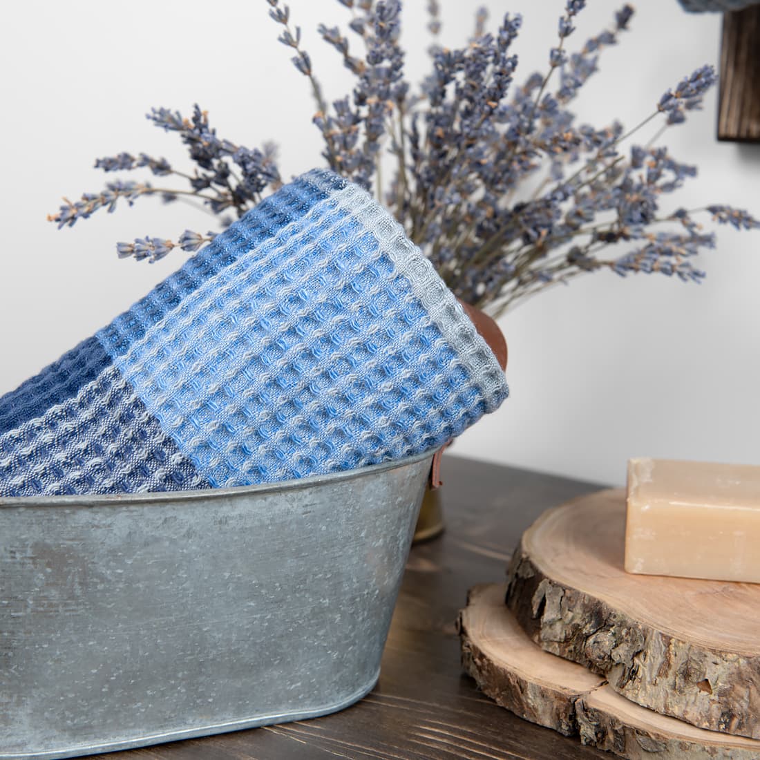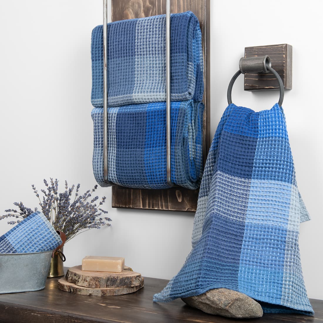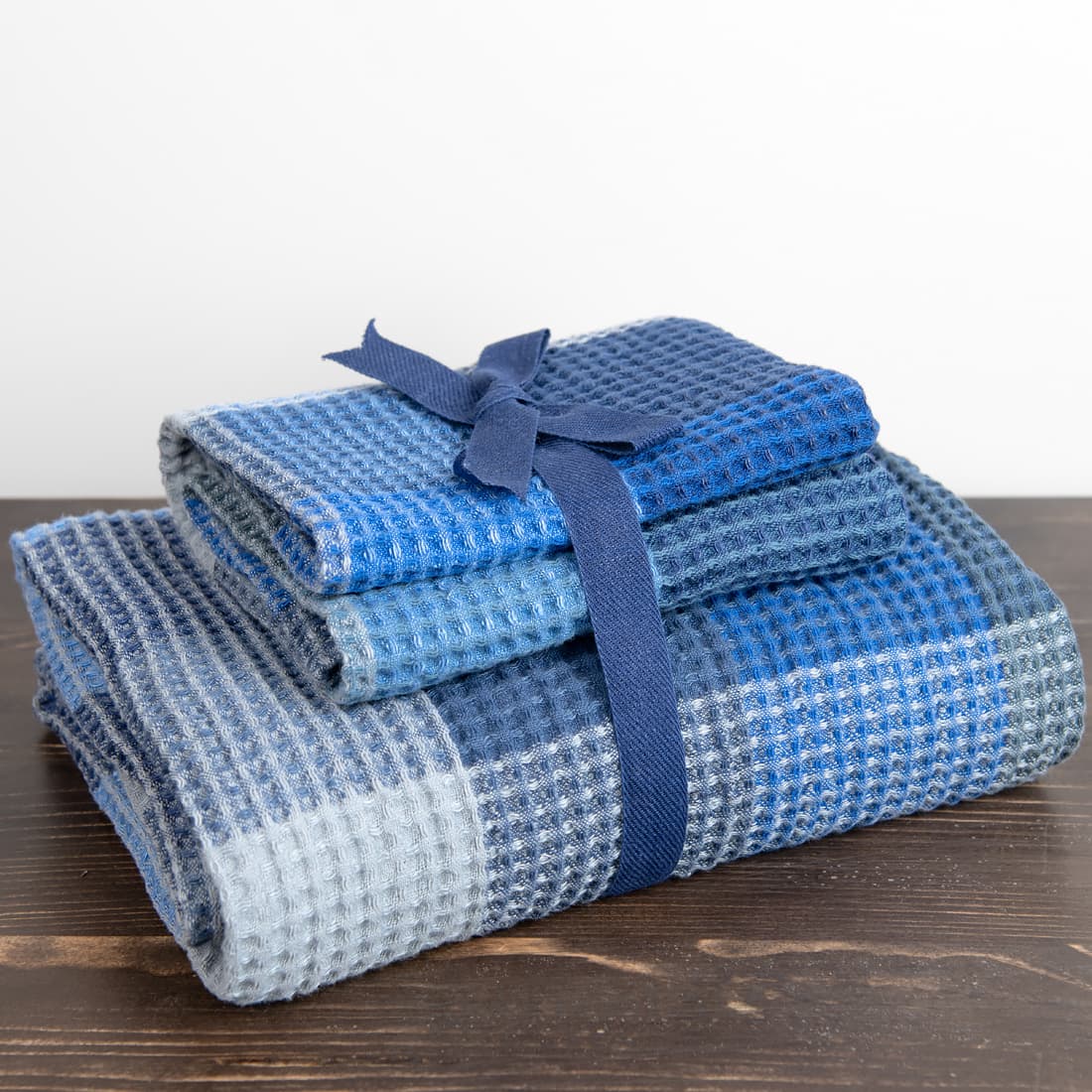 - Detaljer: løkke. Et sett med håndklær er bundet med et bånd av matchende farge