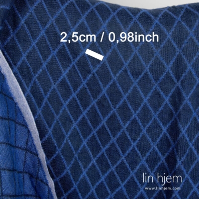 Blå mønstret linstoff vasket