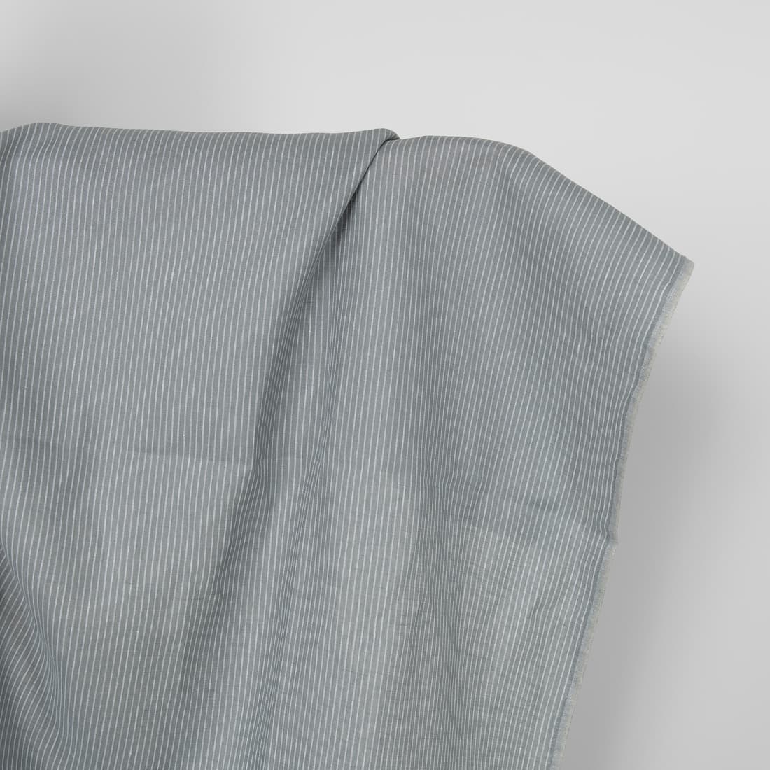 • Blågrå-hvitt stripete linstoff