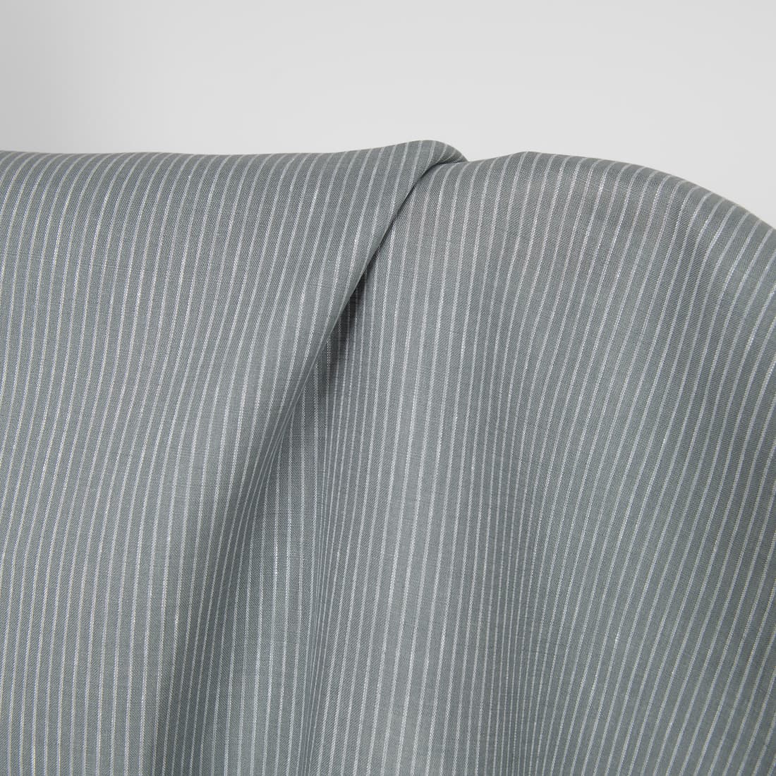 • Blågrå-hvitt stripete linstoff for sying klær, hjemmetekstiler