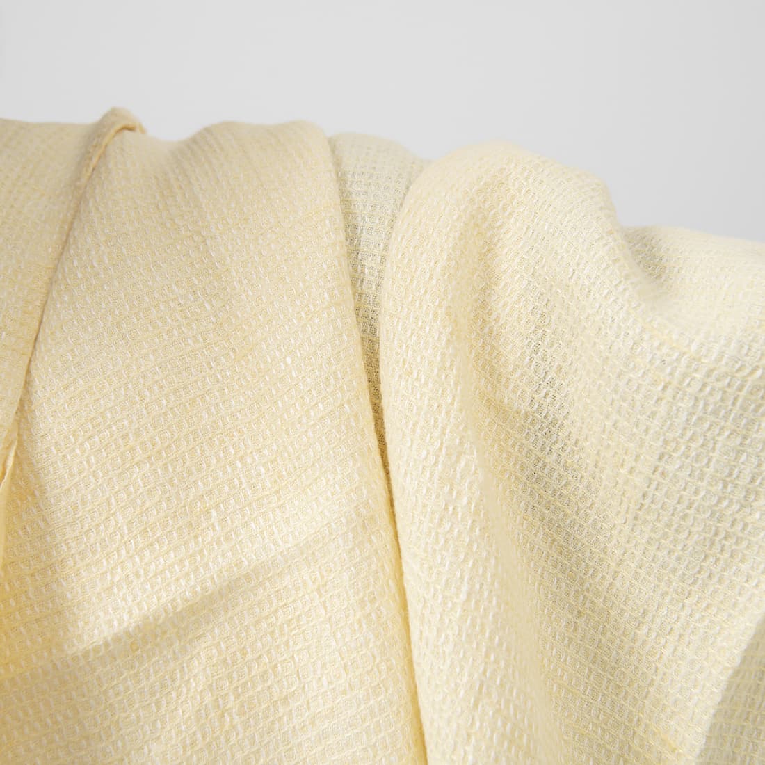 • Blek gul vaffel linstoff, vasket, egnet for morgenkåper og håndklær