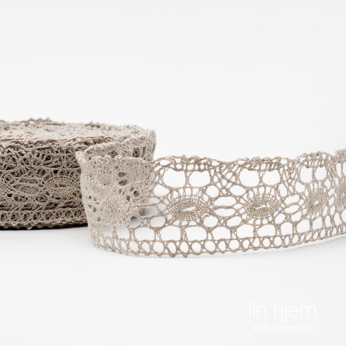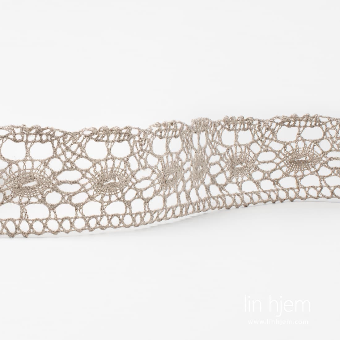 Blonde i lin. Laget av naturlig(ufarget) lingarn. Mønsteret ser ut som et spindelvev.