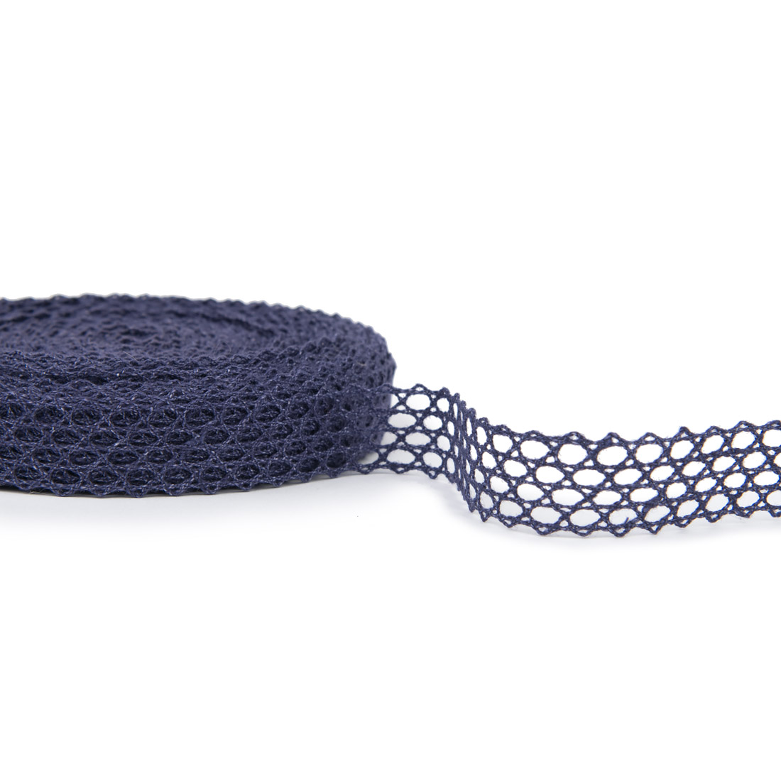 • Blonde i lin mørke blå med nettverkmønster 2,3cm bred