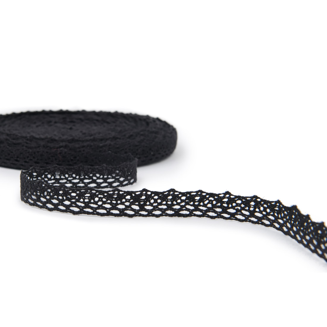 • Blonde i lin svart med geometrisk mønster 1,5cm bred