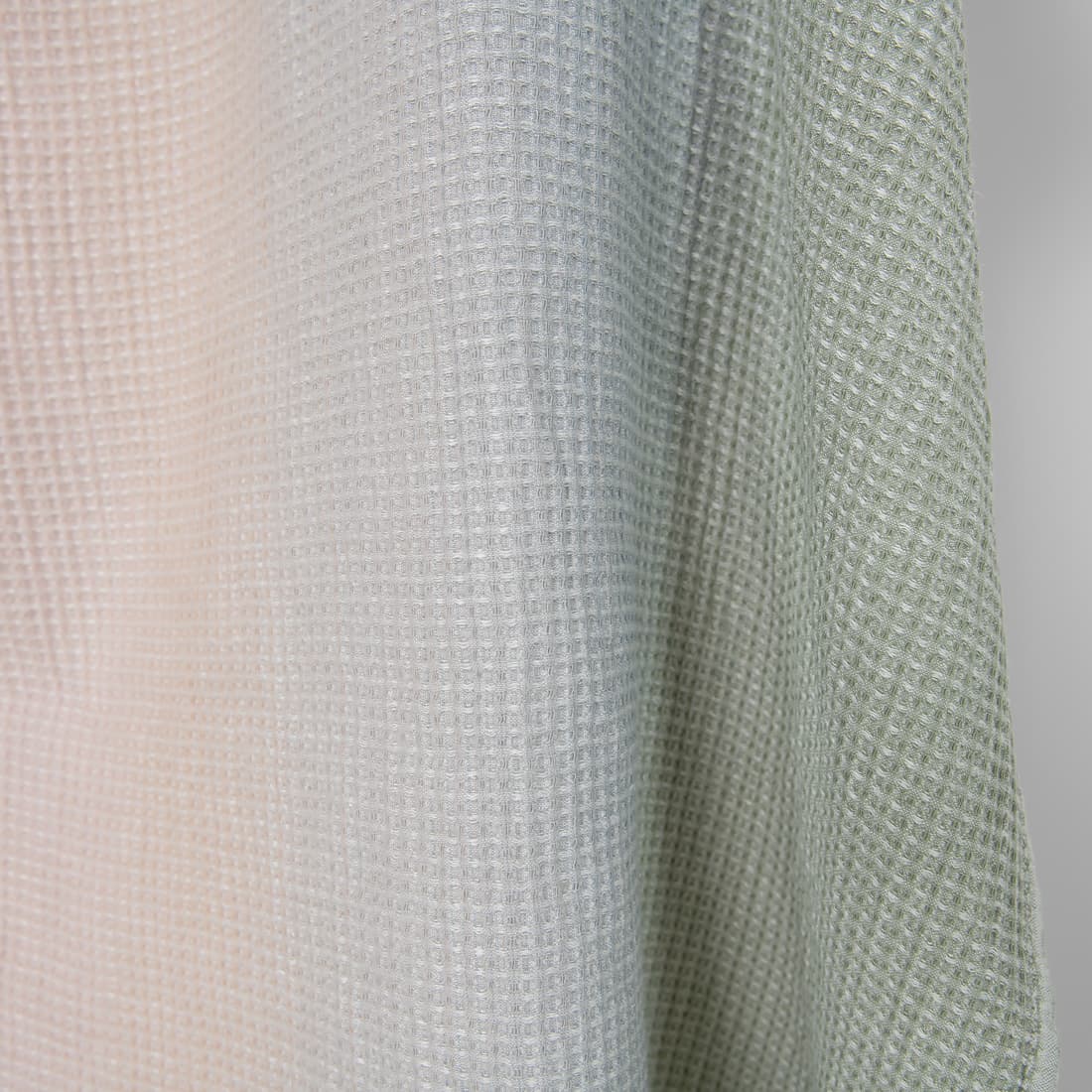 - Farge: vevd garn av gammelgrønt, hvitt, blågrått, brungrått, lysebrunt og lys rosa, melange med fargegradient