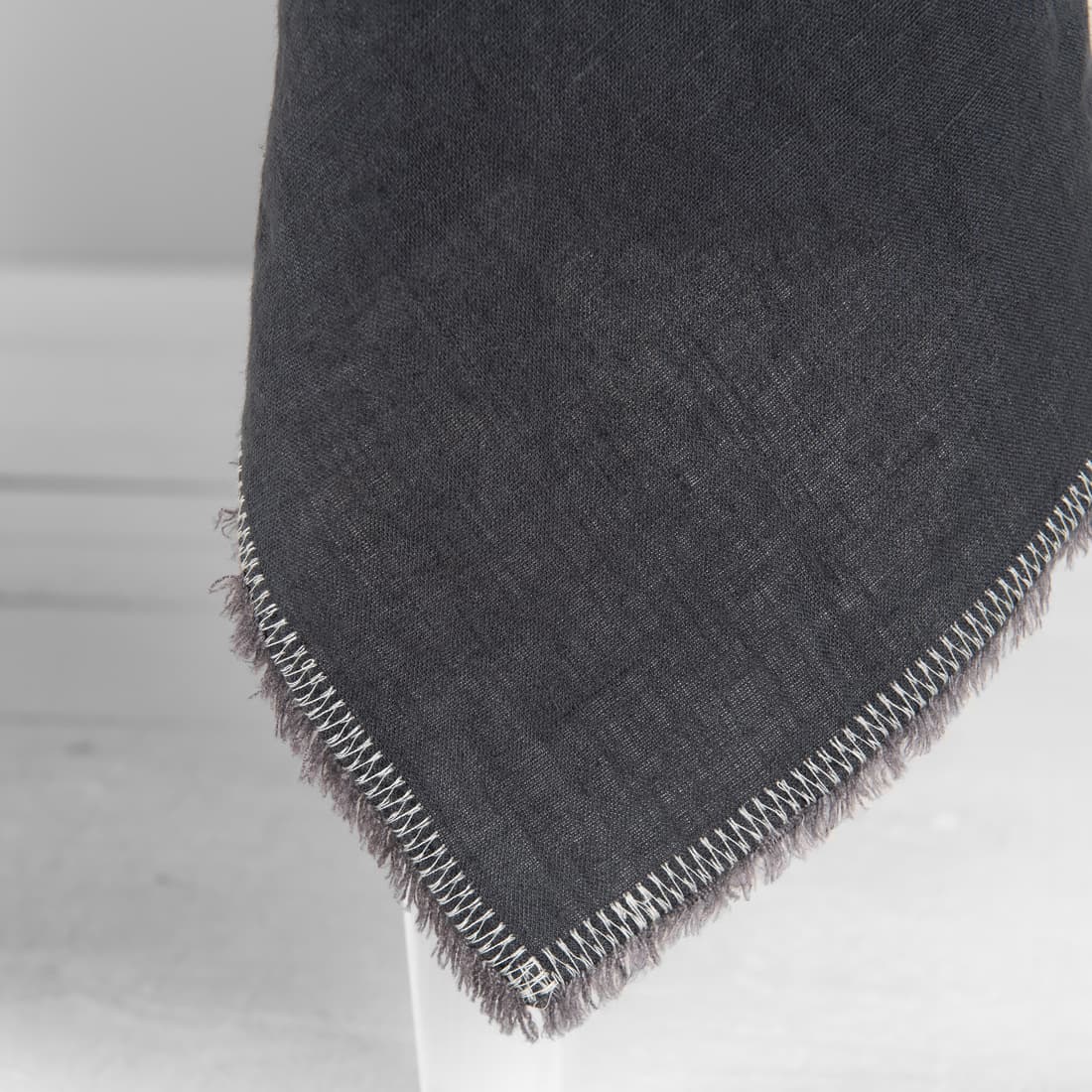 - Konfeksjon: 1,5 cm løse frynser, dekorativ søm i hvit farge