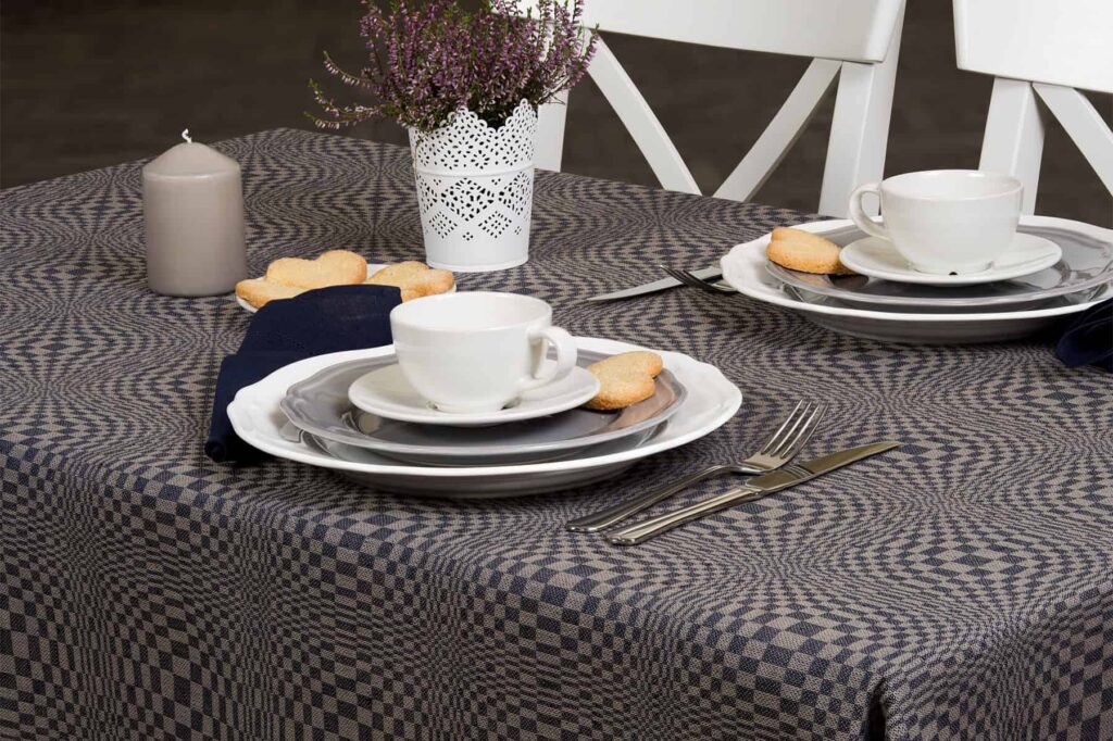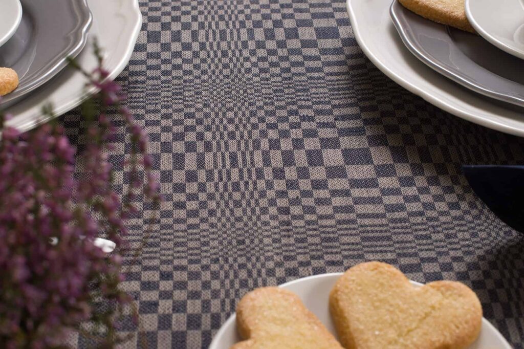 Farge: blanding av mørk beige og sort-blå fargede garn