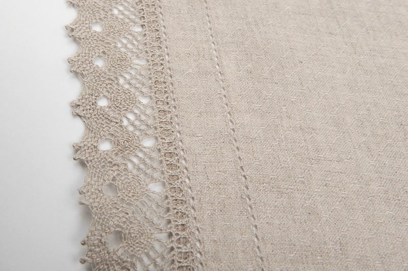 - Konfeksjon: naturgrå blondekant, dobbel hullsøm