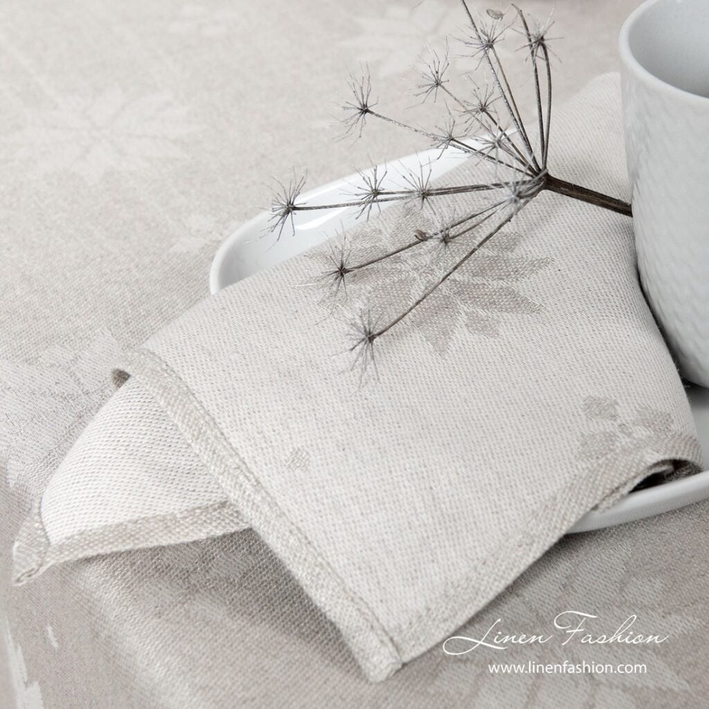 - Farge: blanding av naturlig lin (ufarget, brungrå) og hvite garn