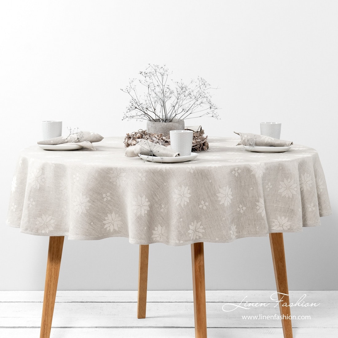- Farge: blanding av naturlig lin (ufarget, brungrå) og hvite bomullsgarn