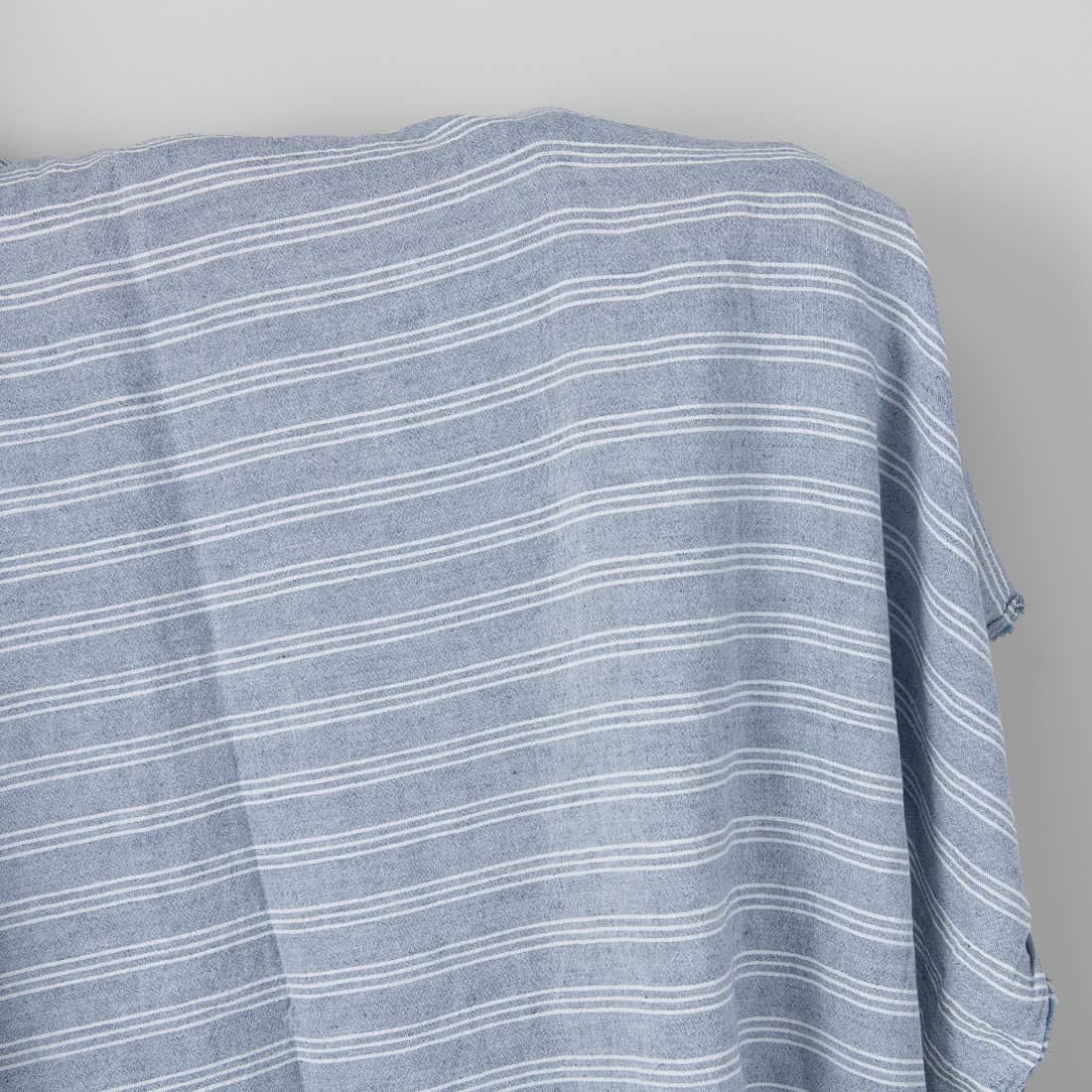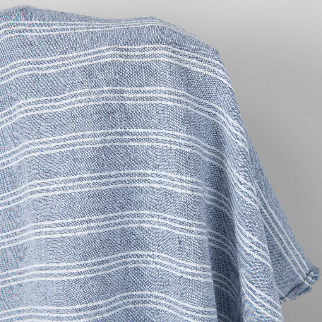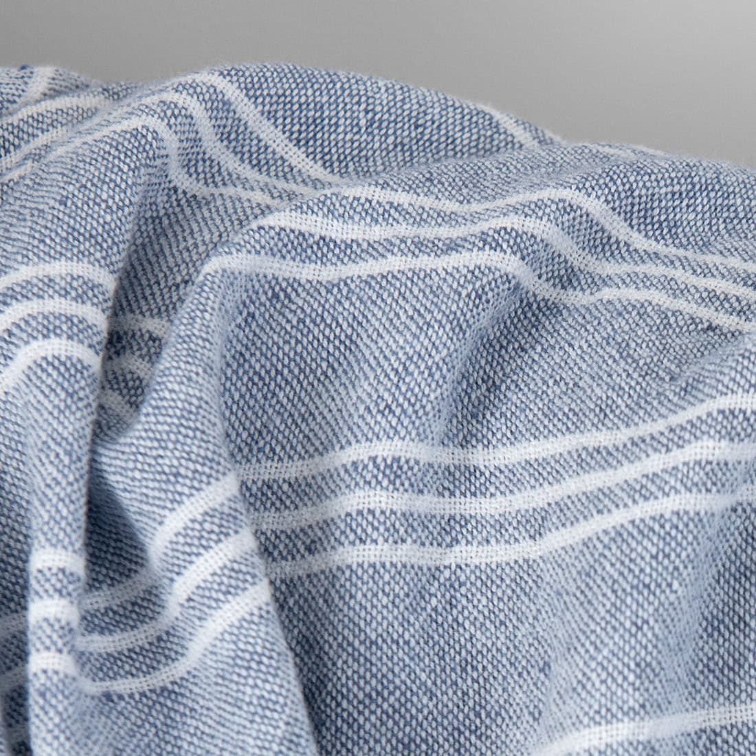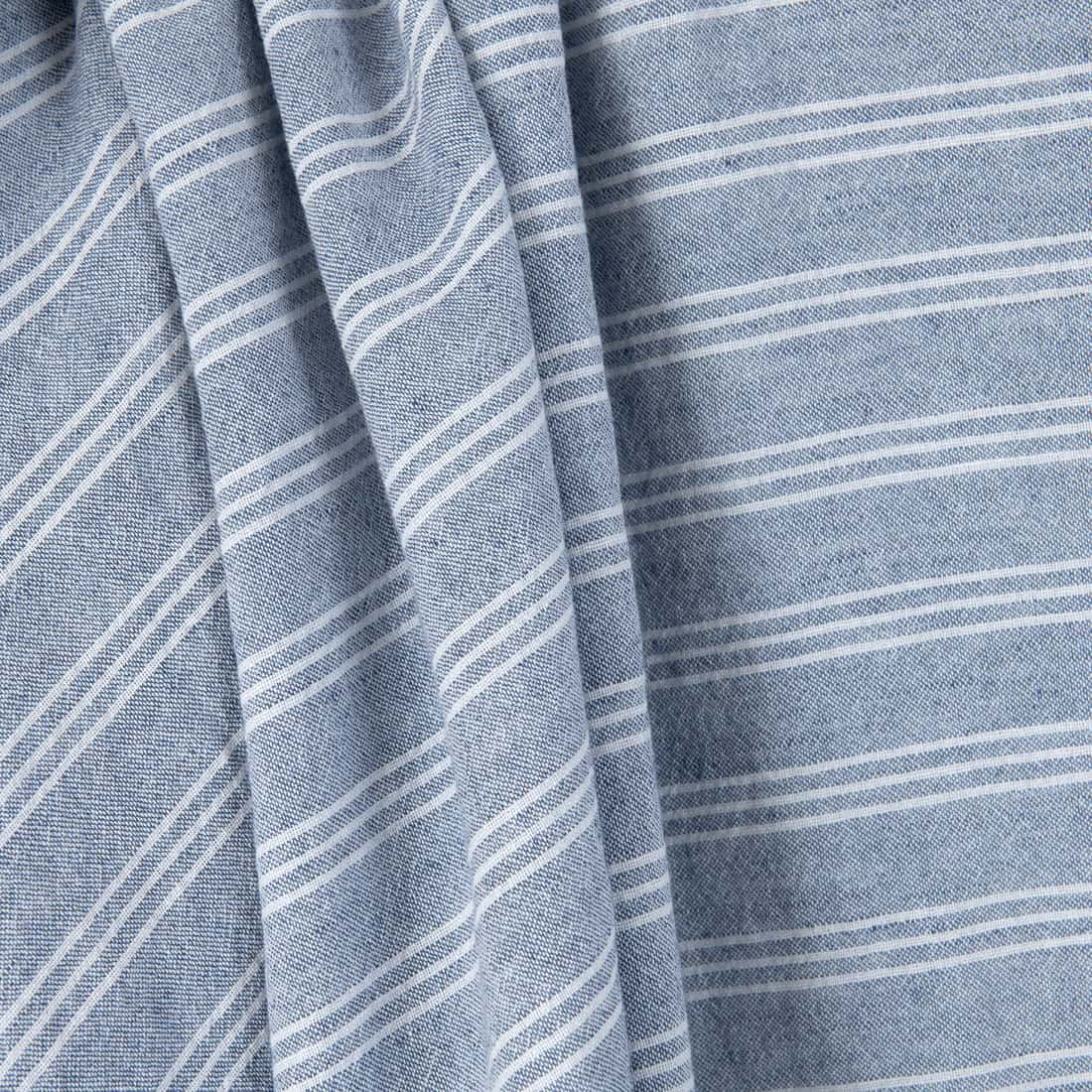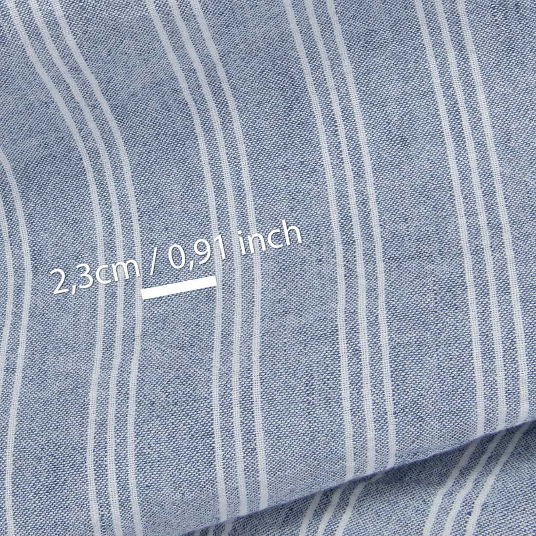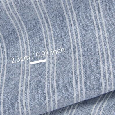• Bredt blått lin-bomullstoff med hvitte striper vasket