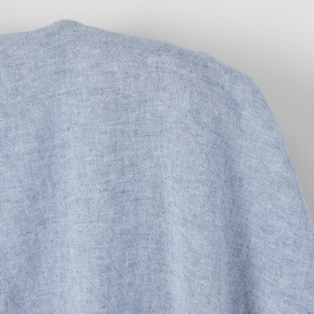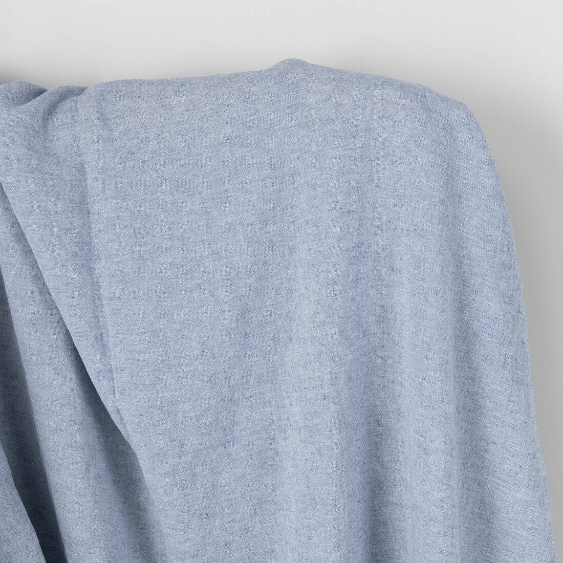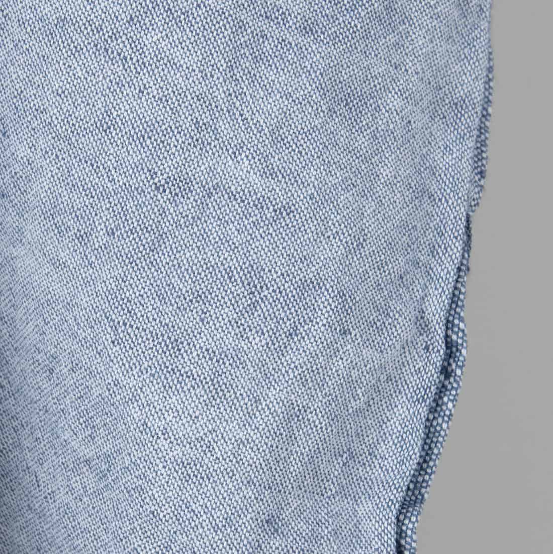 • Bredt halvlin stoff denimblått-knallhvitt melert vasket
