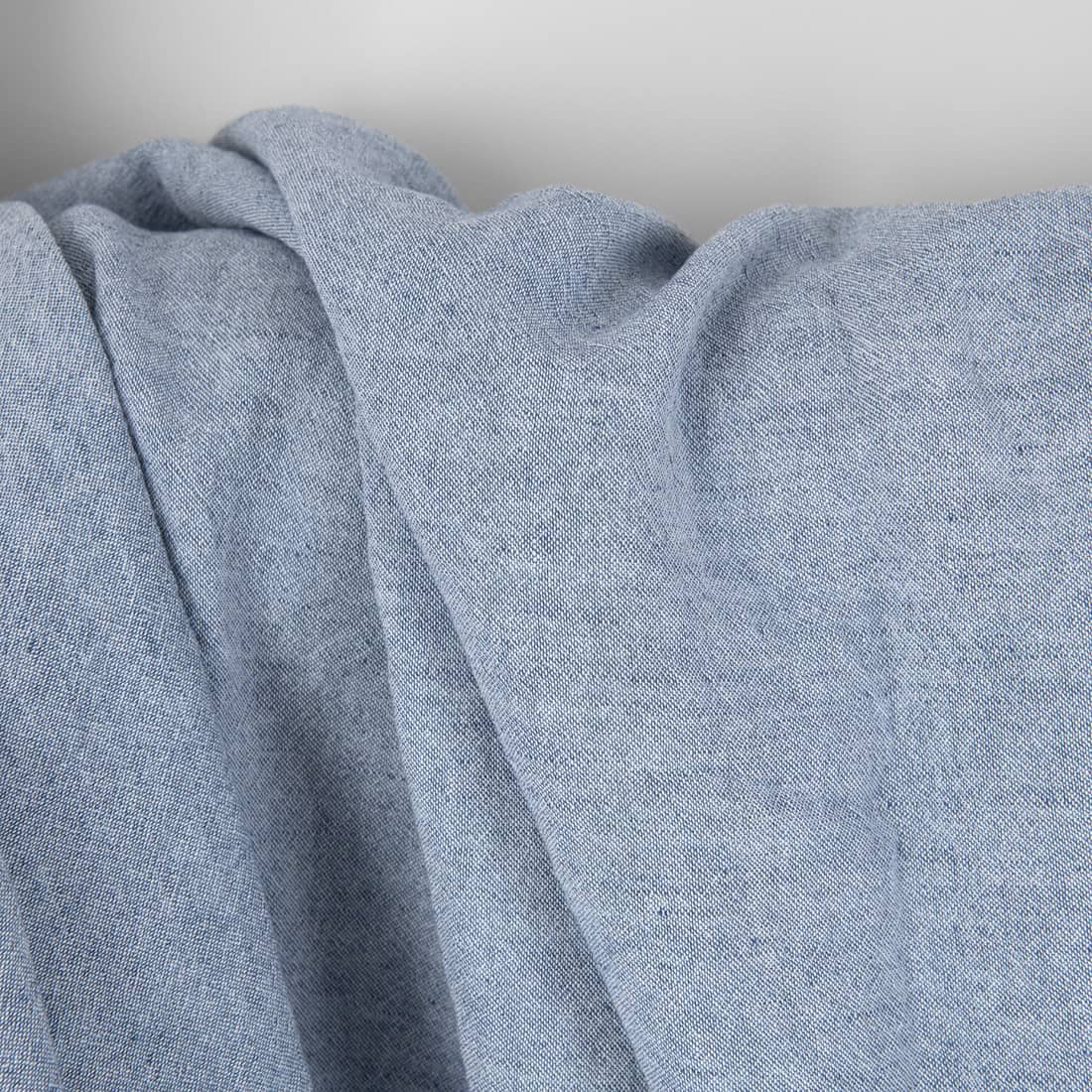• Bredt halvlin stoff blått-hvitt vasket