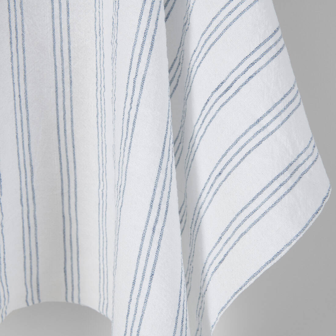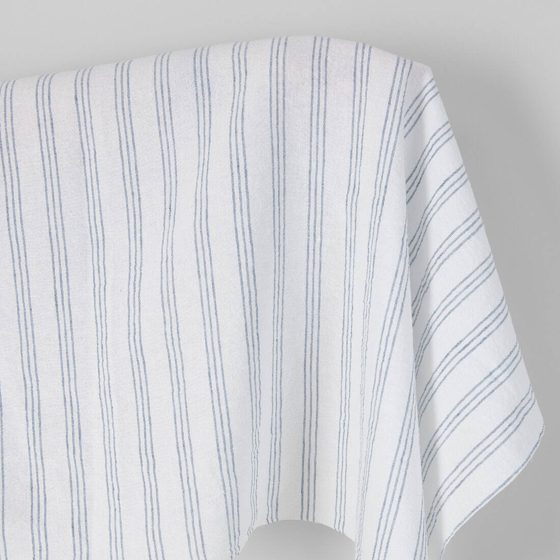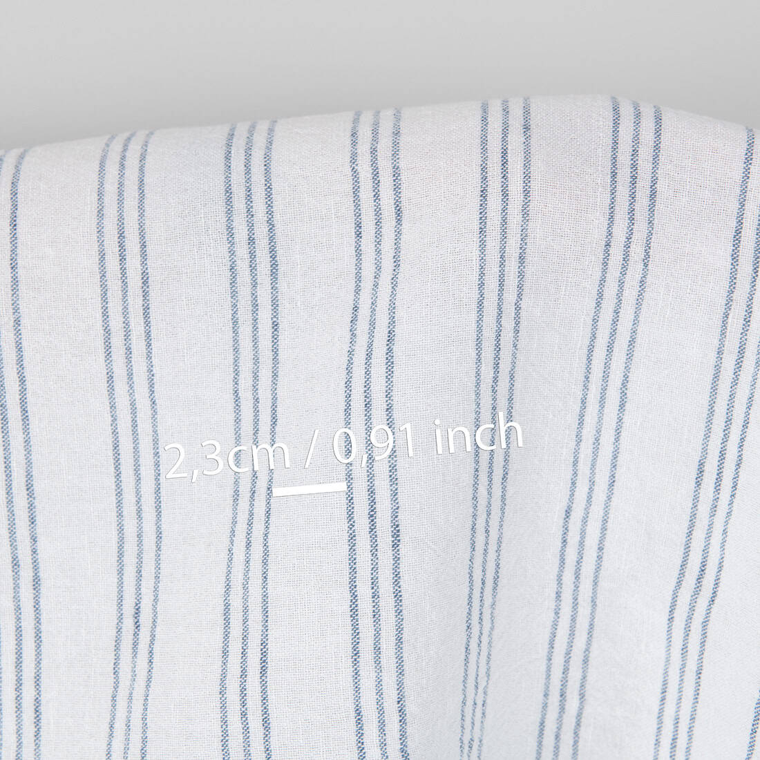 • Bredt hvitt halvlin stoff med blå striper vasket
