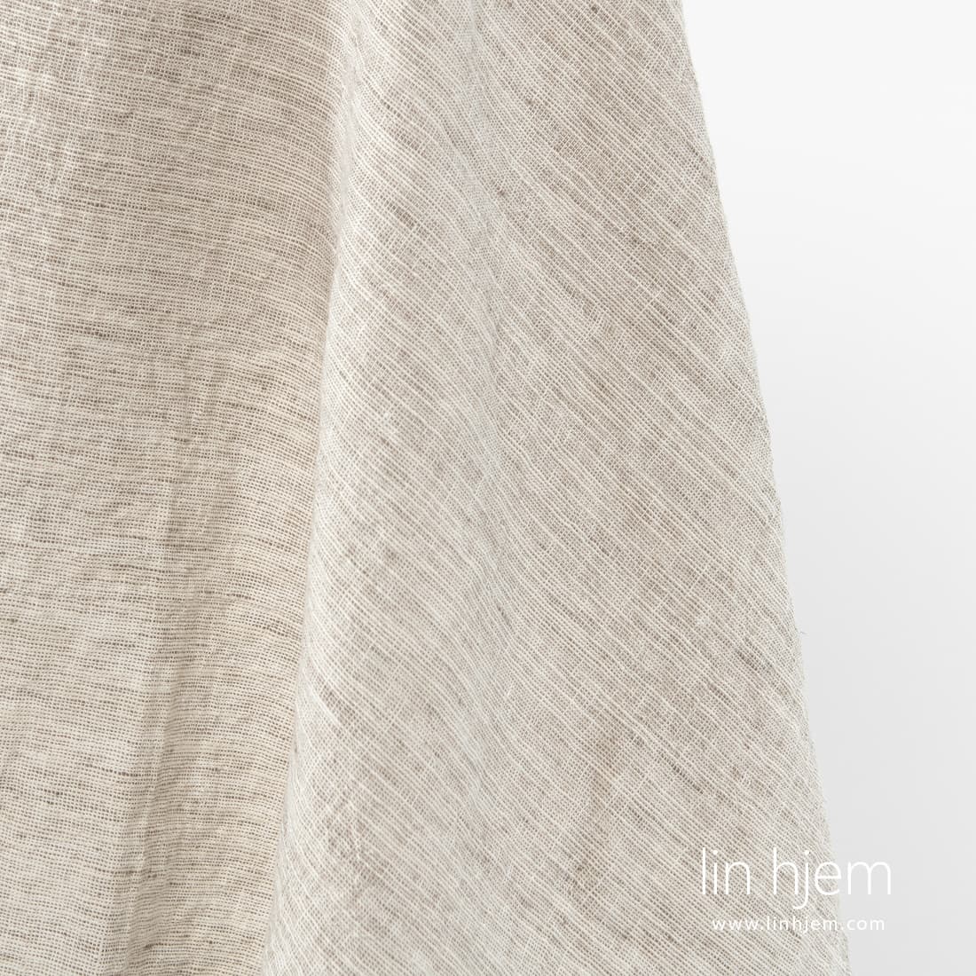 - Farge: vevd brunaktig lin og melkehvit (gulaktighvit) bomull garn med spesielle tilfeldige fortykninger, melange