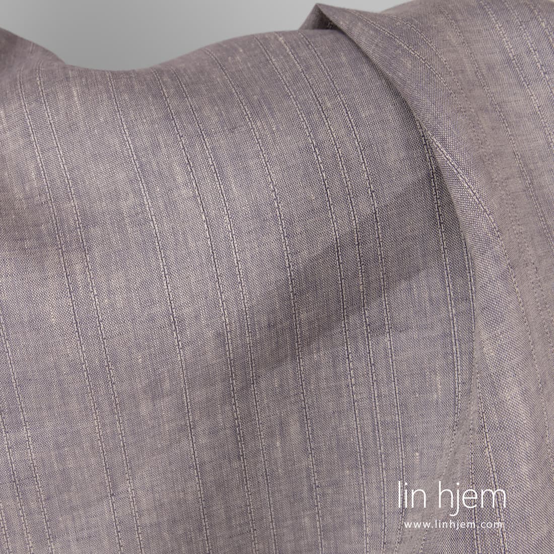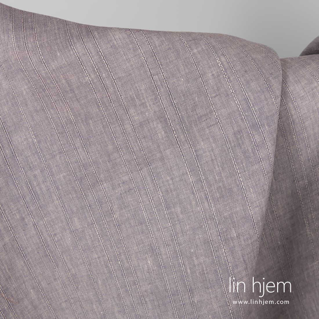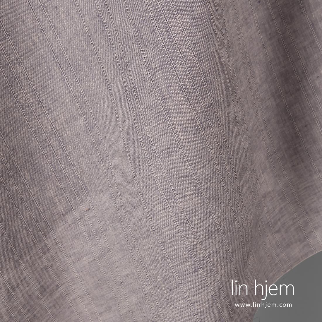 Brunaktig lilla linstoff vevd av lilla og sand farget lingarn, dekorert med vertikale striper. Tettvevd, holdbart, lett, middels tykkelse.