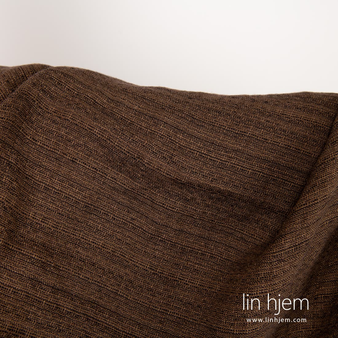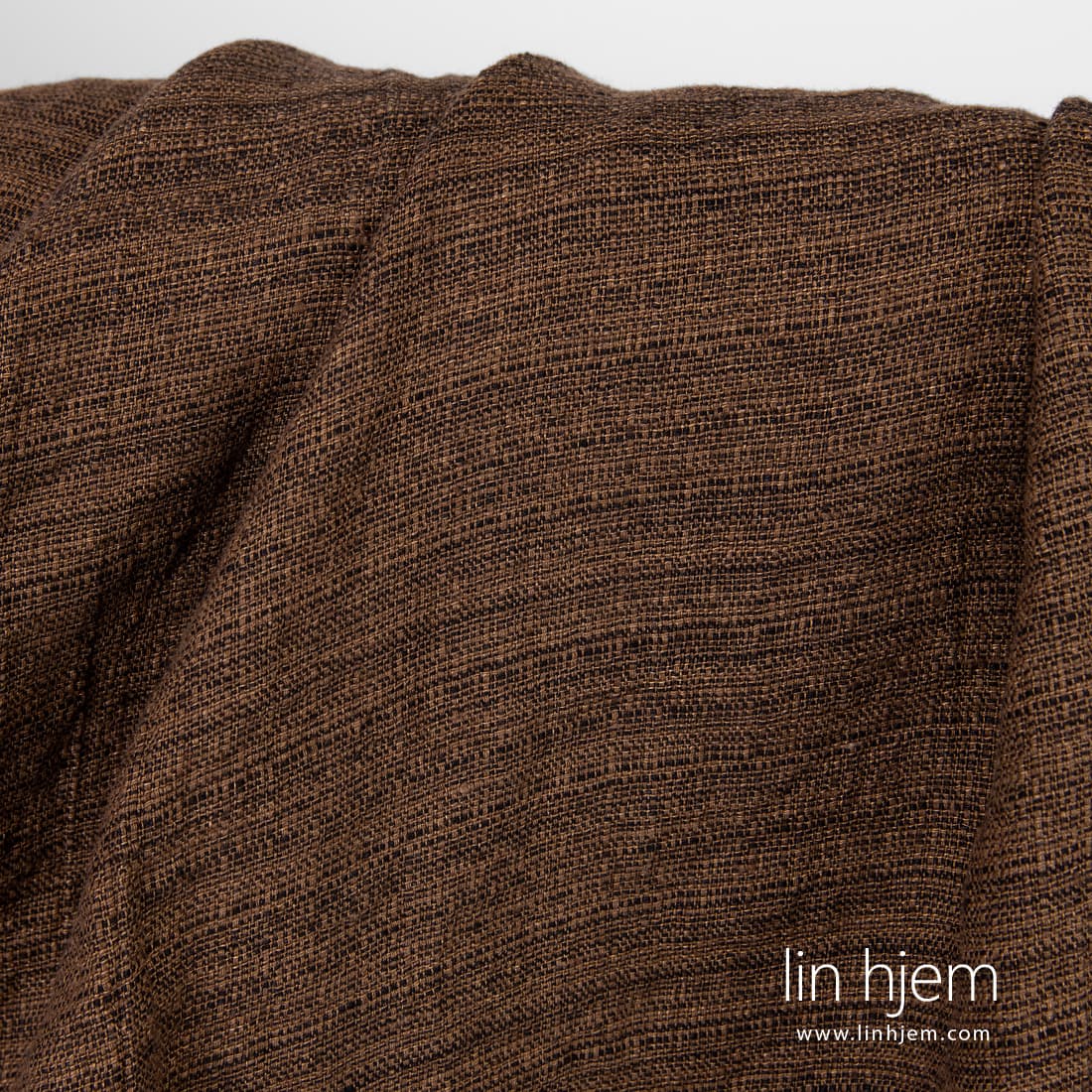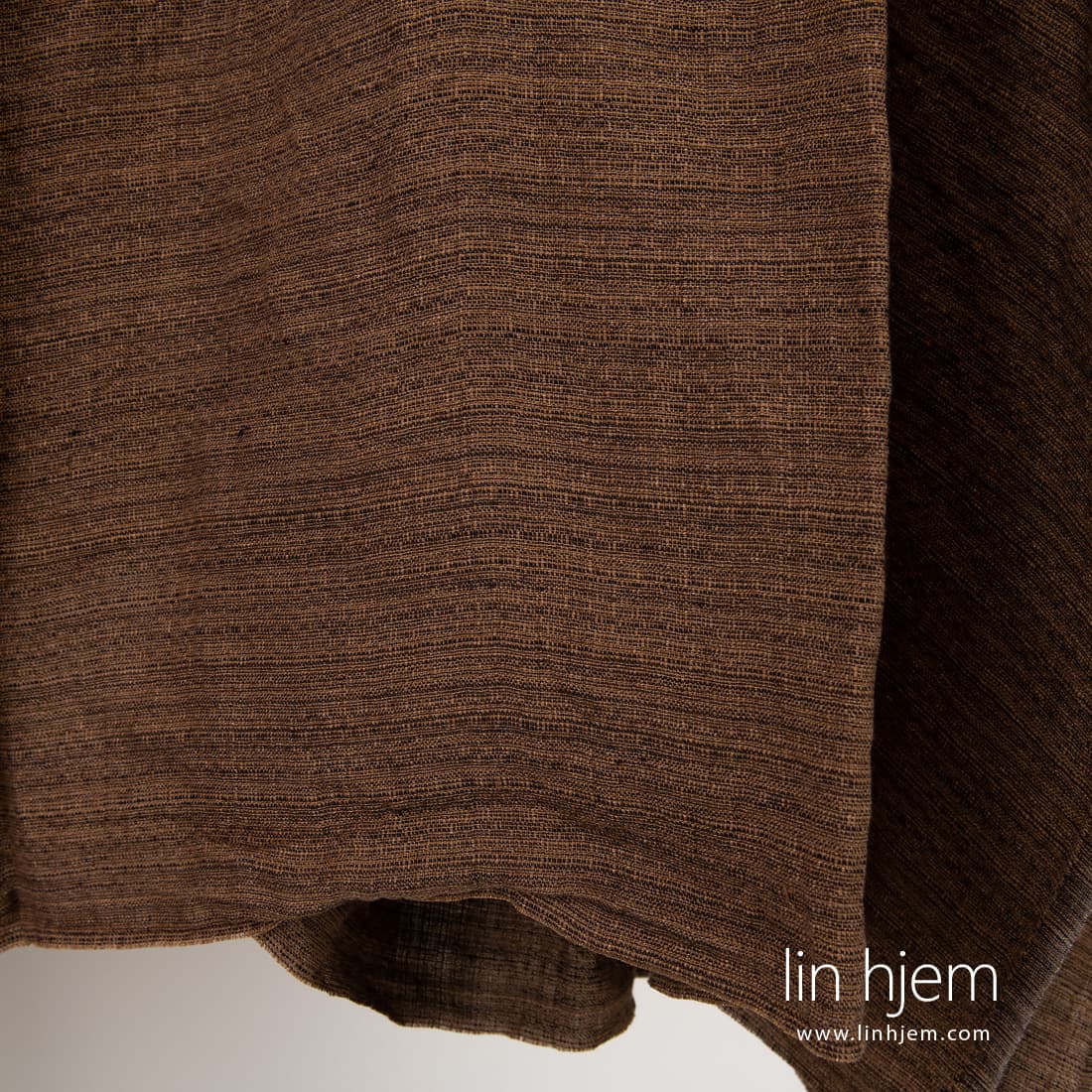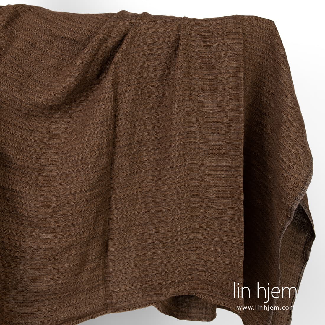 • Vasket brunt mønstret linstoff.