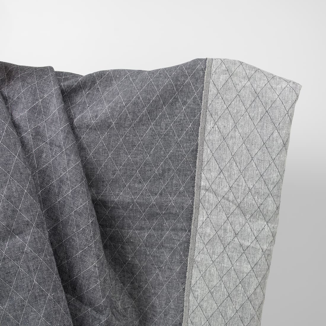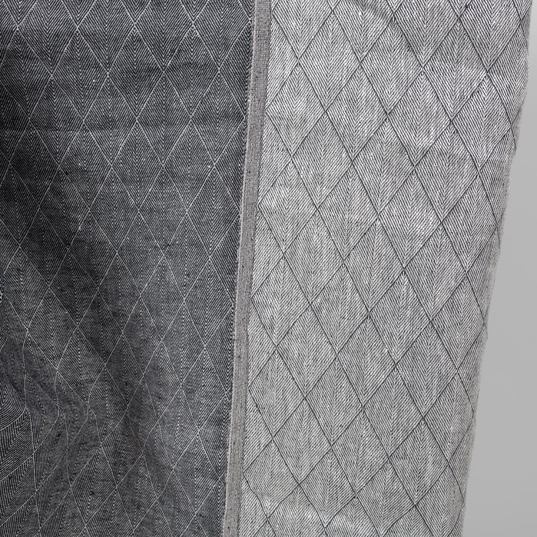 • Dobbeltsidig linstoff i blå og hvit farge med diamantmønster for klær, hjemmetekstiler