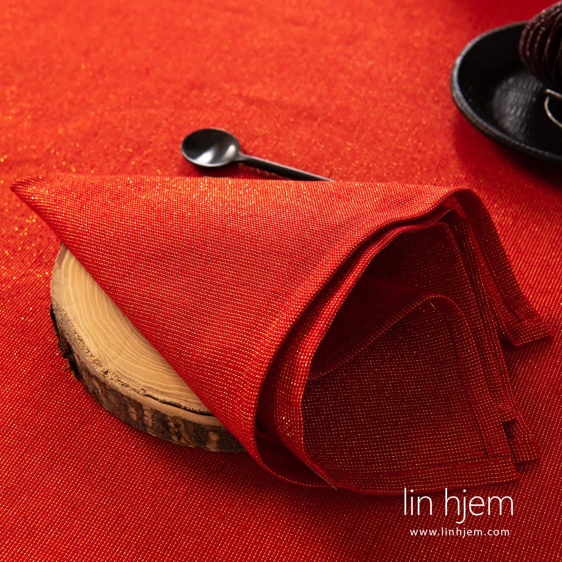 - Laget for å passe til en duk av samme stoff, men med disse serviettene kan du dekorere spisebordet dekket med en ensfarget rød duk.