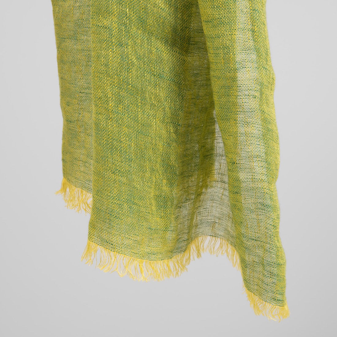 - Farge: vevd garn i svovelgult og grangrønt, melange