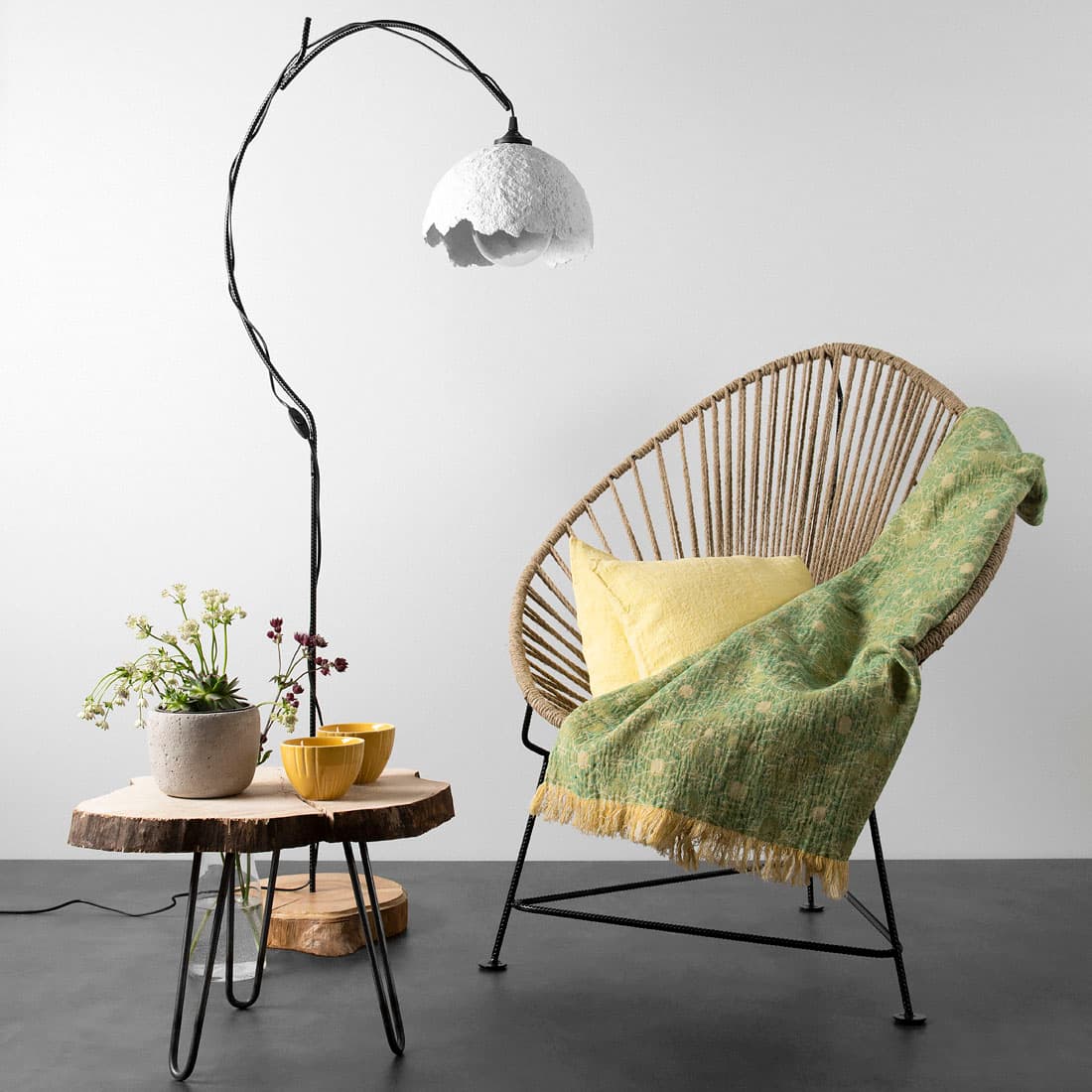 - Farge: vevd grønt, hvitt, gult og sennepsfarget garn