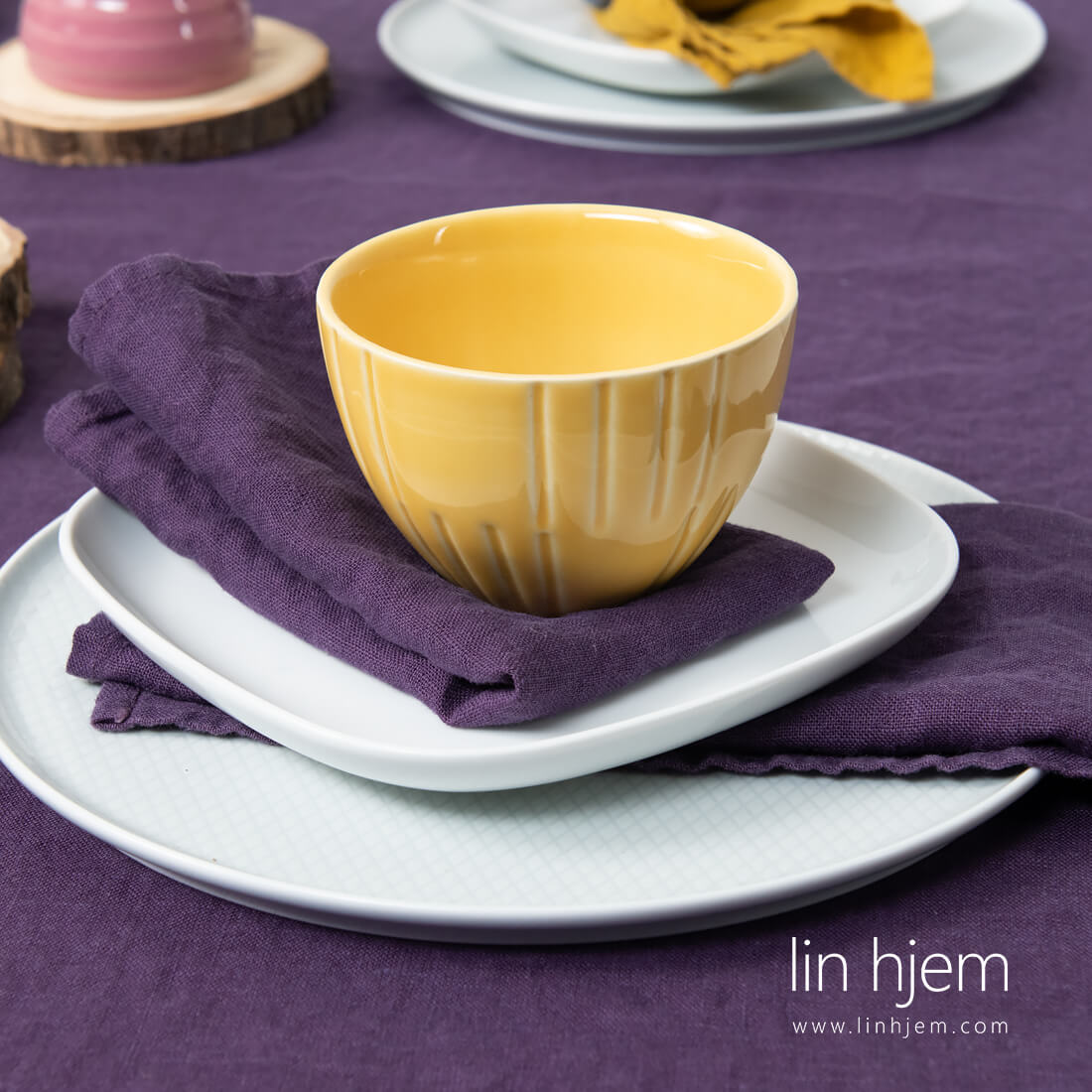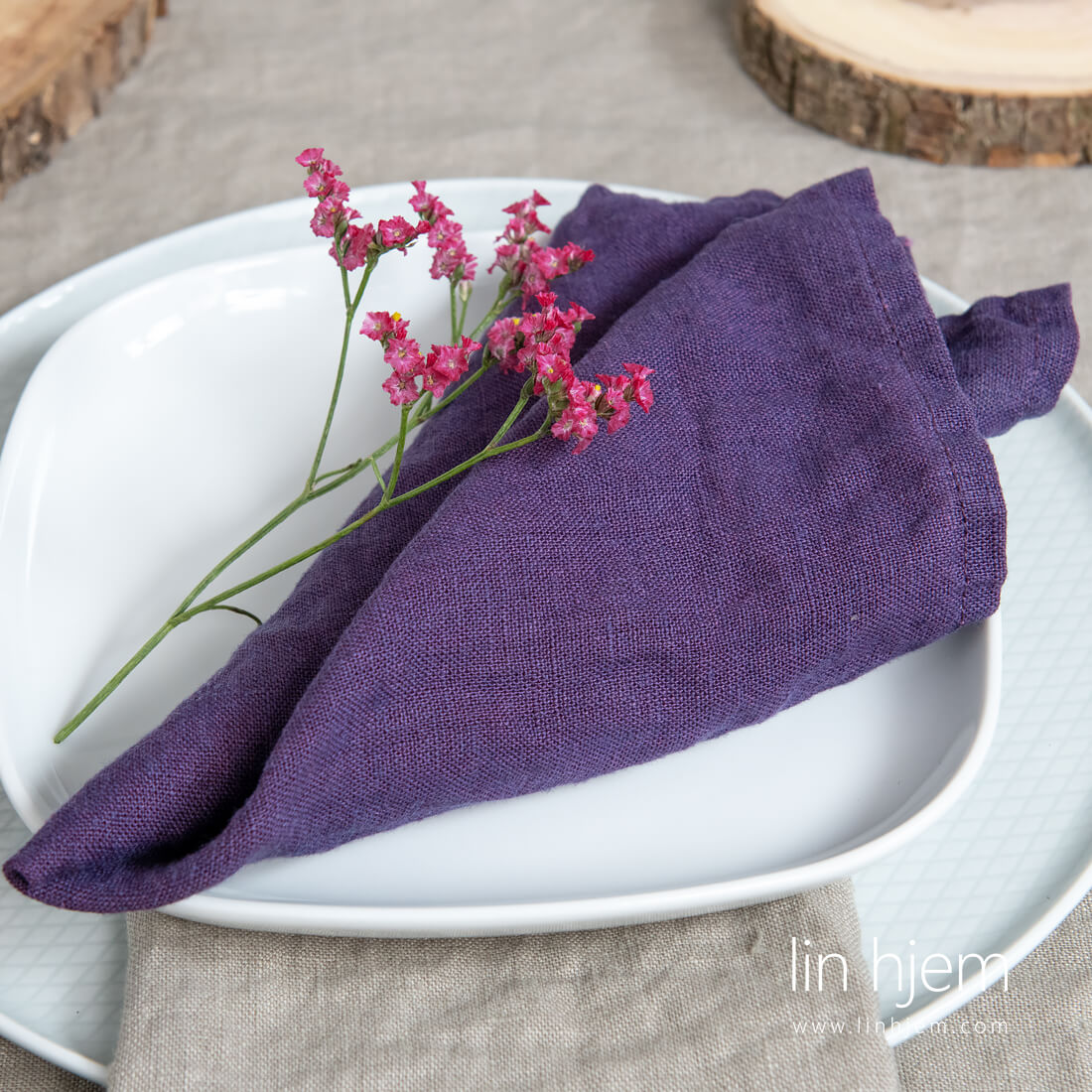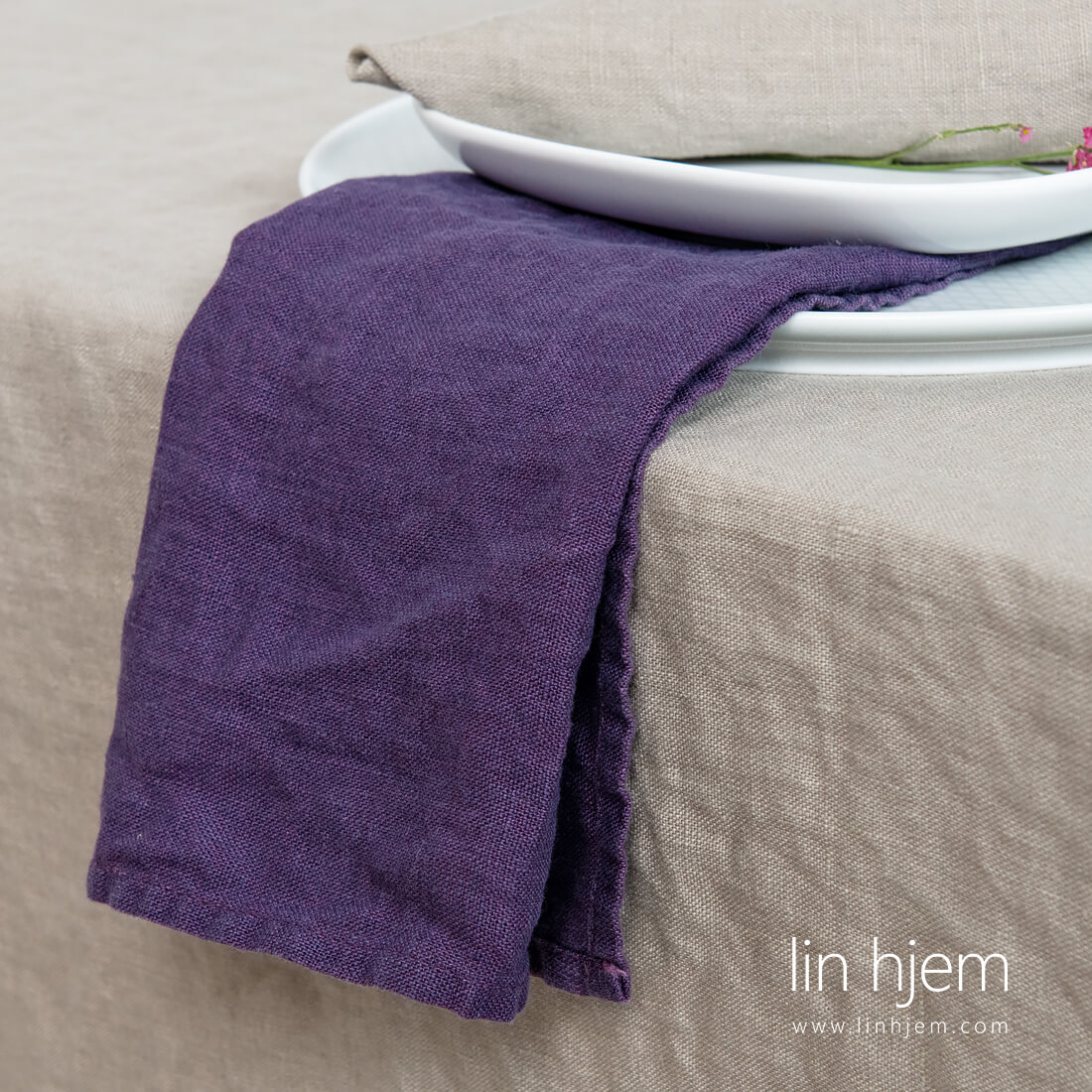 Lilla serviett i vasket lin. Rik lilla farge kan passe fint med duker i nøytrale farger. Designet for de som liker lilla farge.