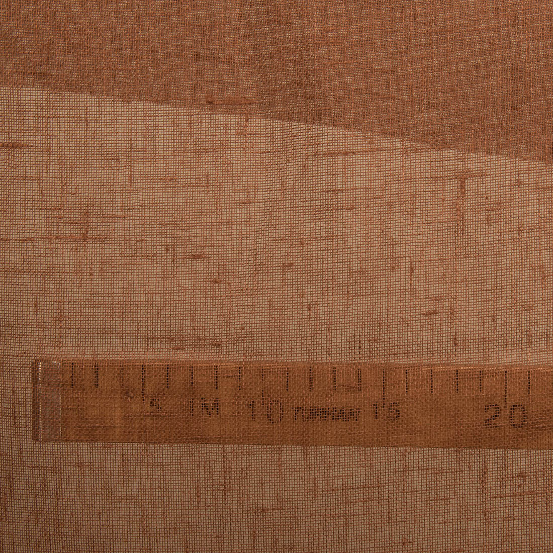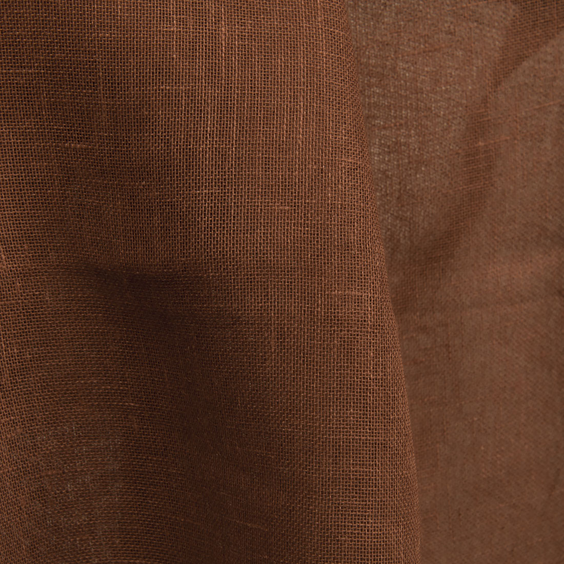 Gjennomsiktig linstoff i brun farge. Løstvevd og lett stoff.