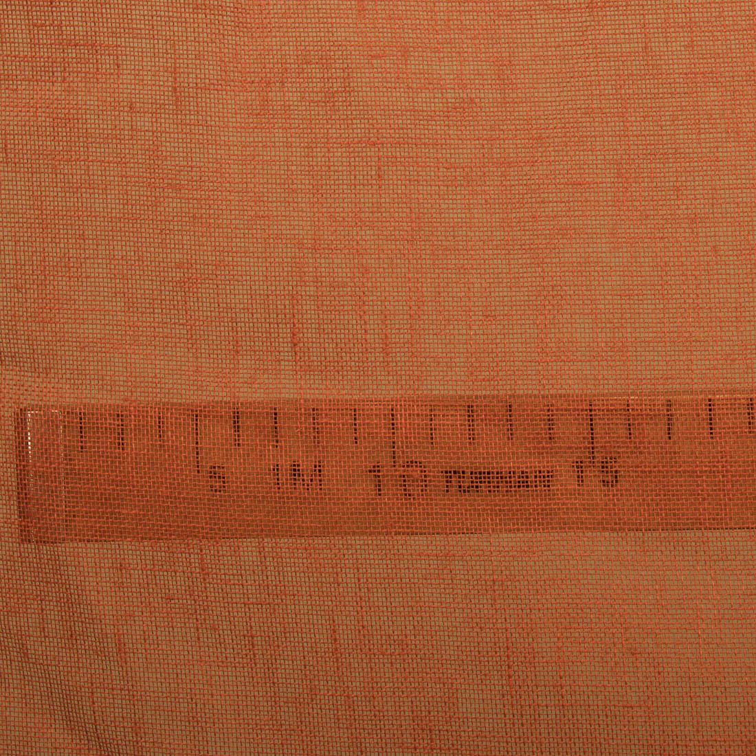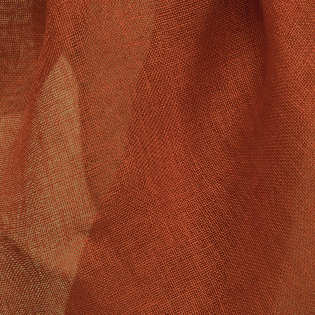 Gjennomsiktig linstoff i rød farge som er litt oransjeaktig. Løstvevd stoff, lett og tynn. Rett fra produsenten.