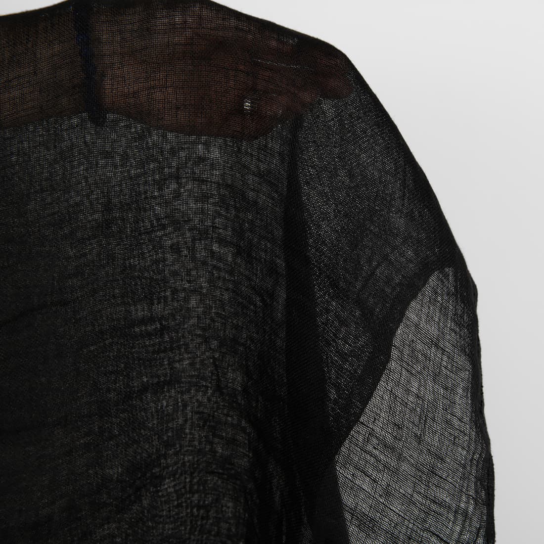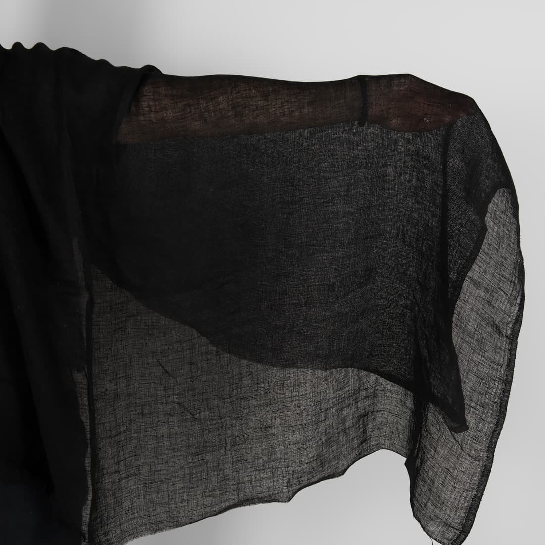 • Gjennomsiktig linstoff svart vasket som er mykt, skånsomt, løstvevd, lett