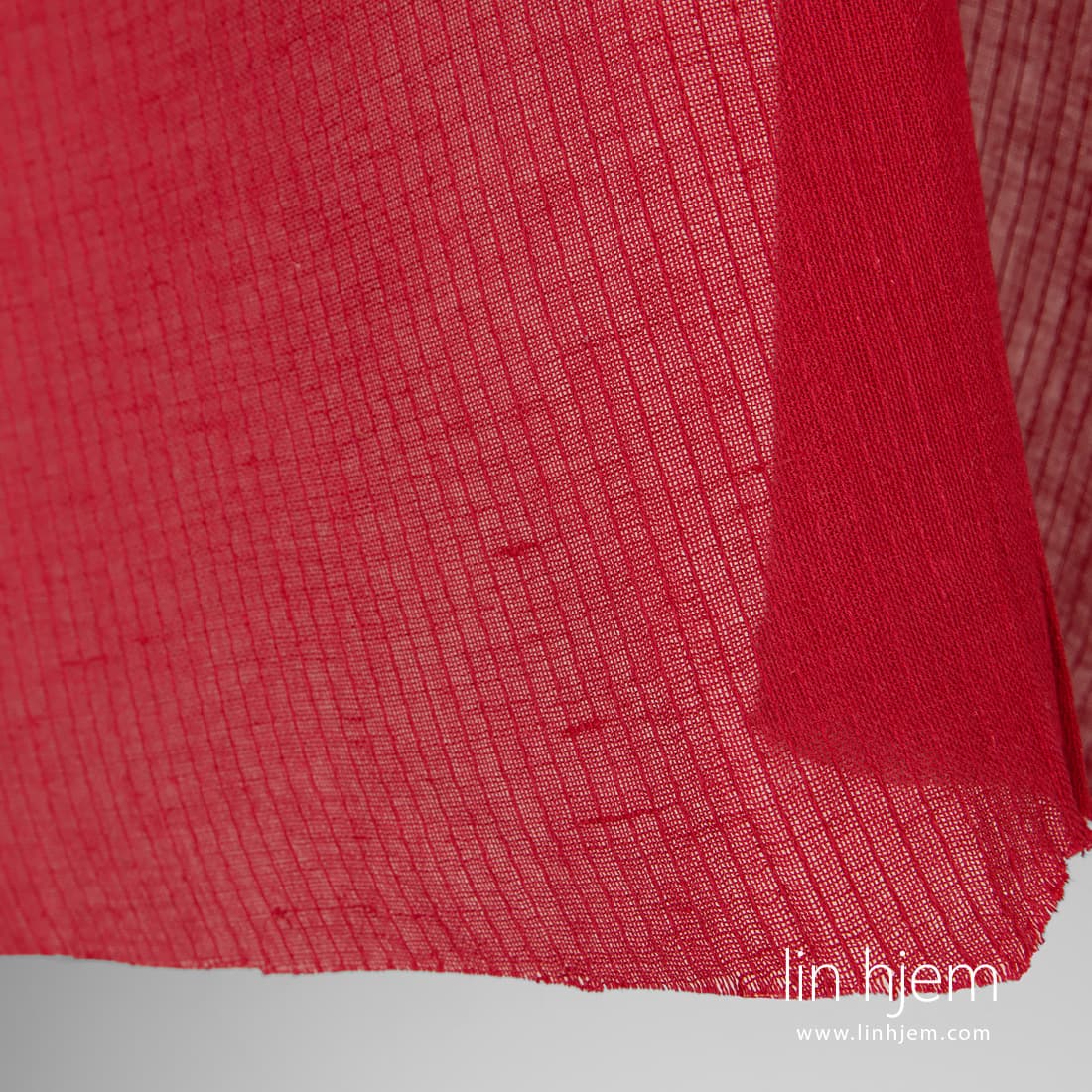 • Rødt stripete gjennomsiktig halvlin stoff.