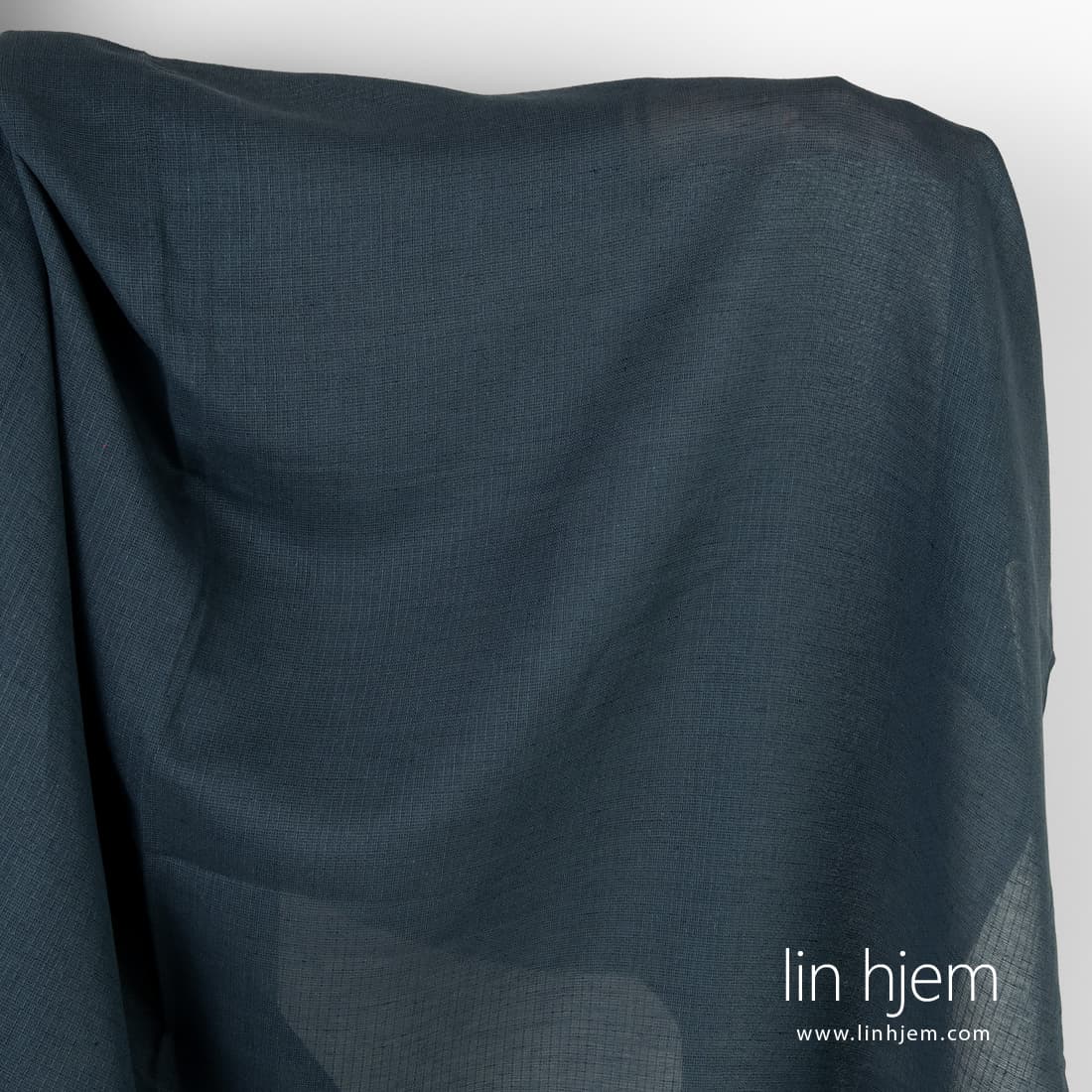 • Mørkeblått gjennomsiktig halvlin stoff.