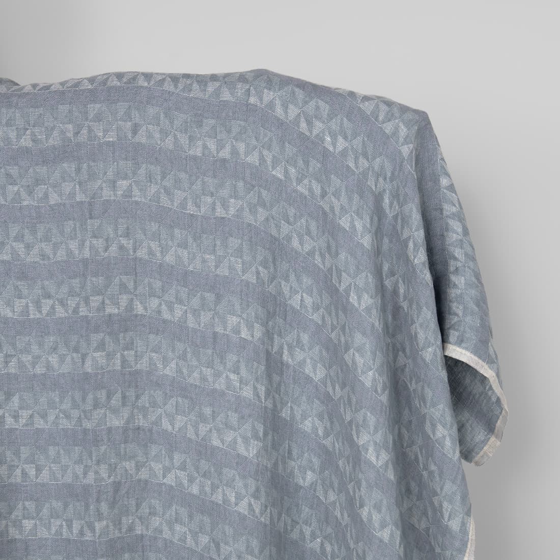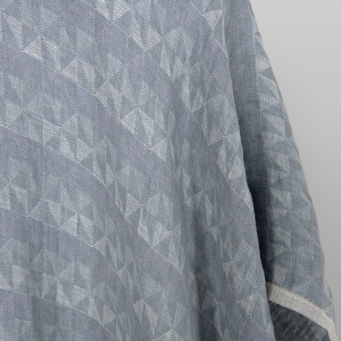 - Farge: vevd lyseblågrått, lyseblågrønt, hvitt og lysegråfiolett garn