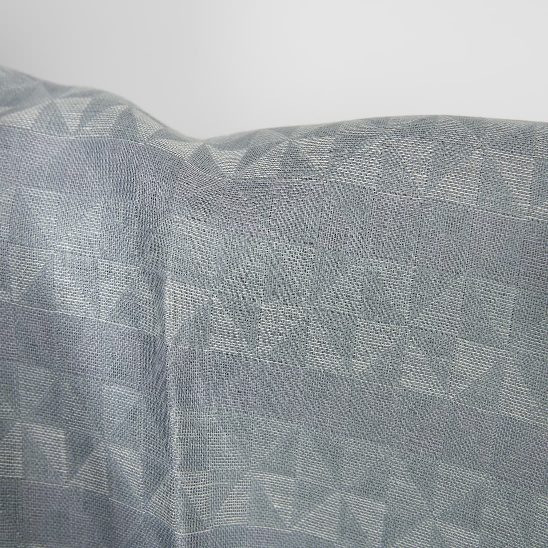 • Grå-lilla linstoff med geometrisk mønster