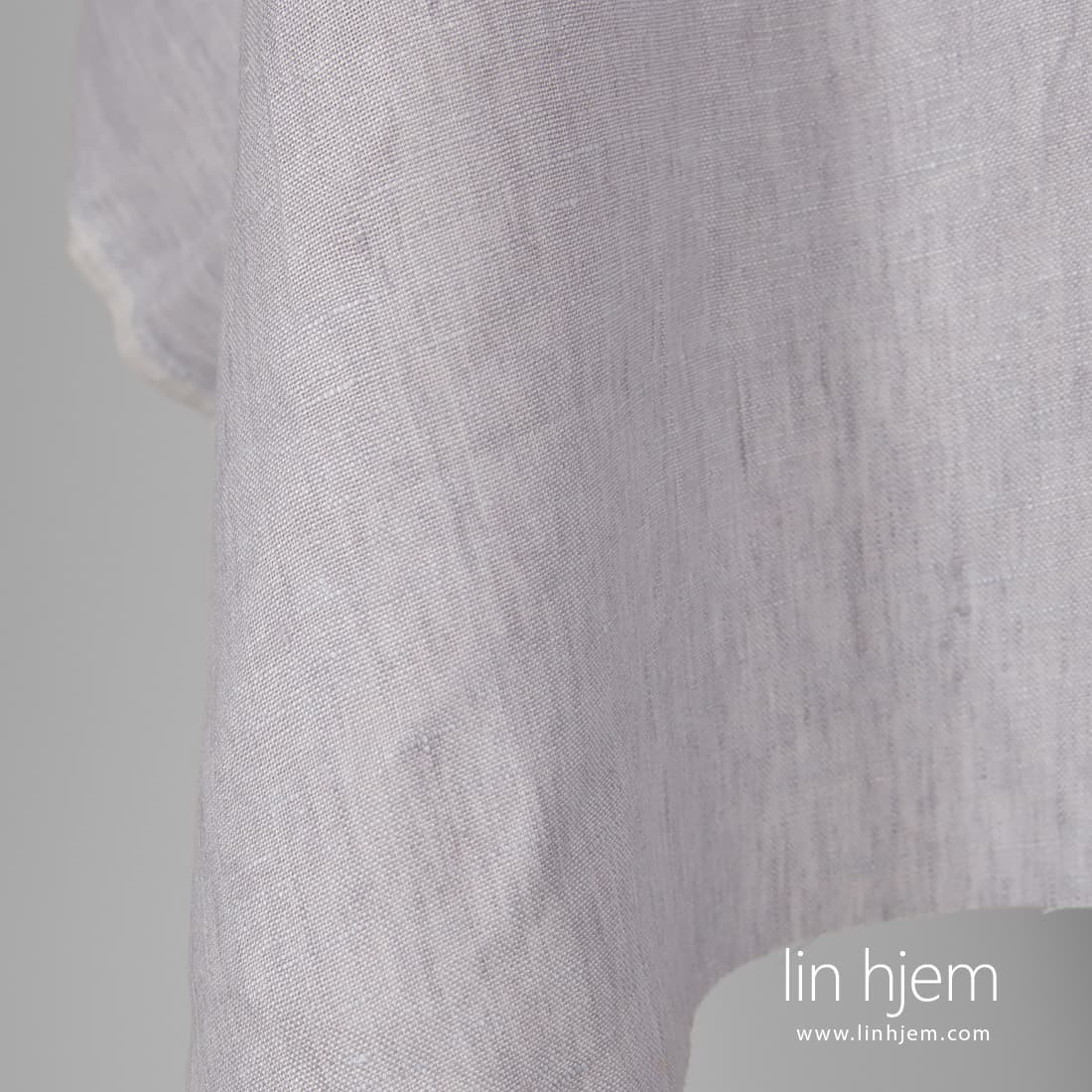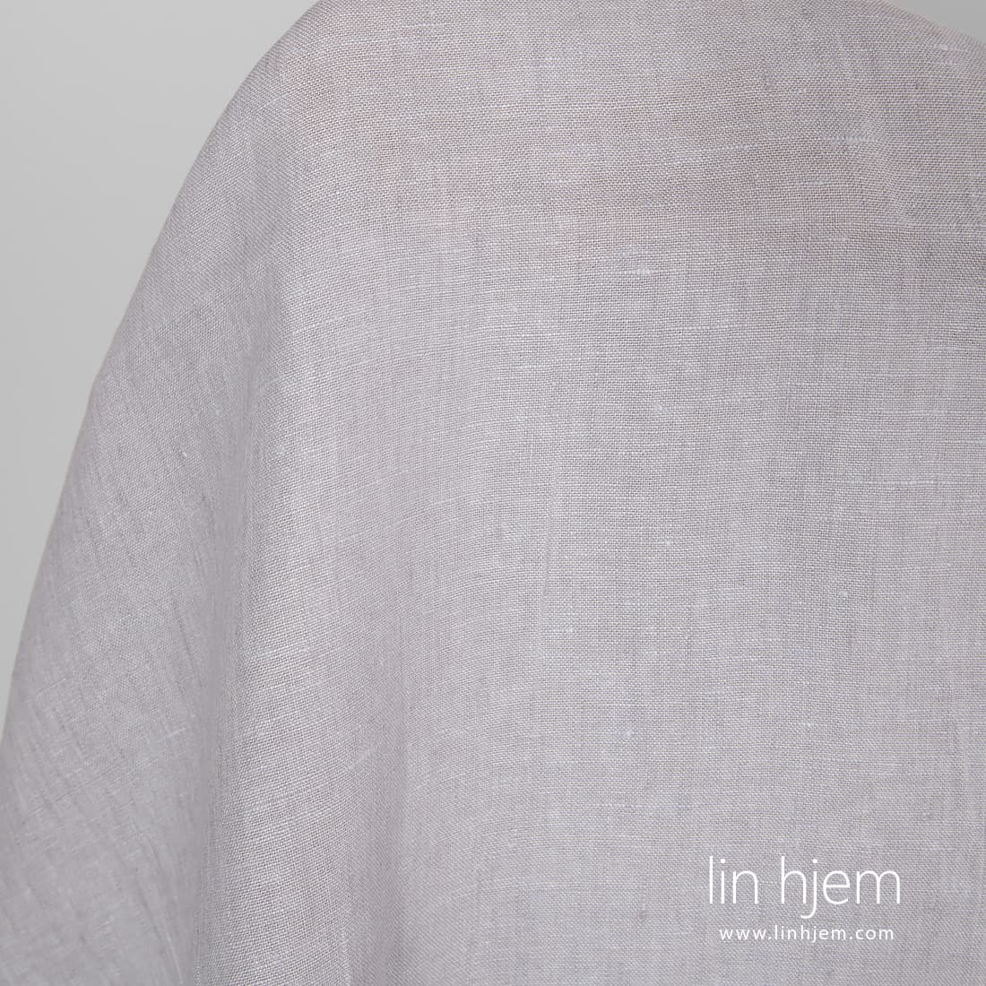 Gråaktig lilla melange linstoff som ble vevd av grå med lilla fargetone og blåaktig grå lingarn. Stoffet er holdbart, tettvevd, middels tykkelse. Passer perfekt til klær, hjem tekstil produkter.