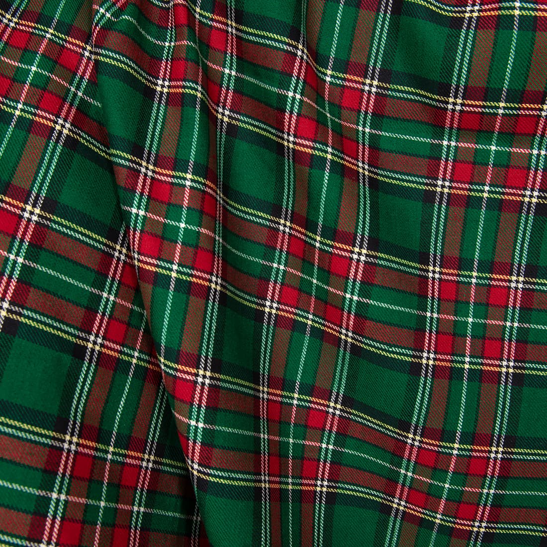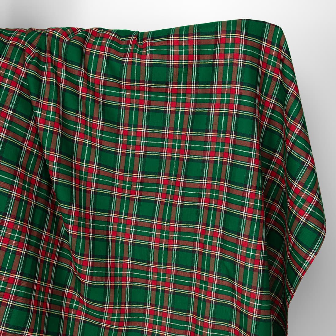 • Grønn halvlinstoff rød rutete i twill mønster