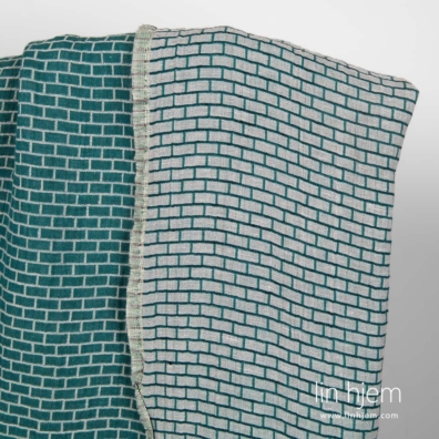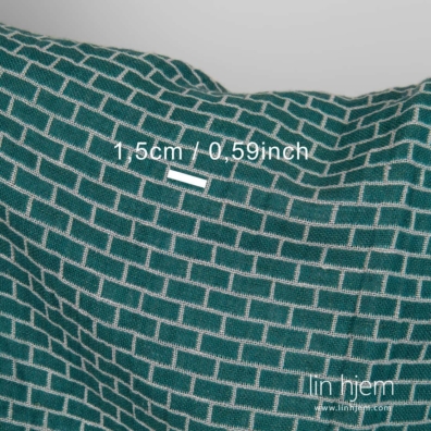 - Farge: vevd av mørkegrønt, mørk turkis, svart og blå-grå garn